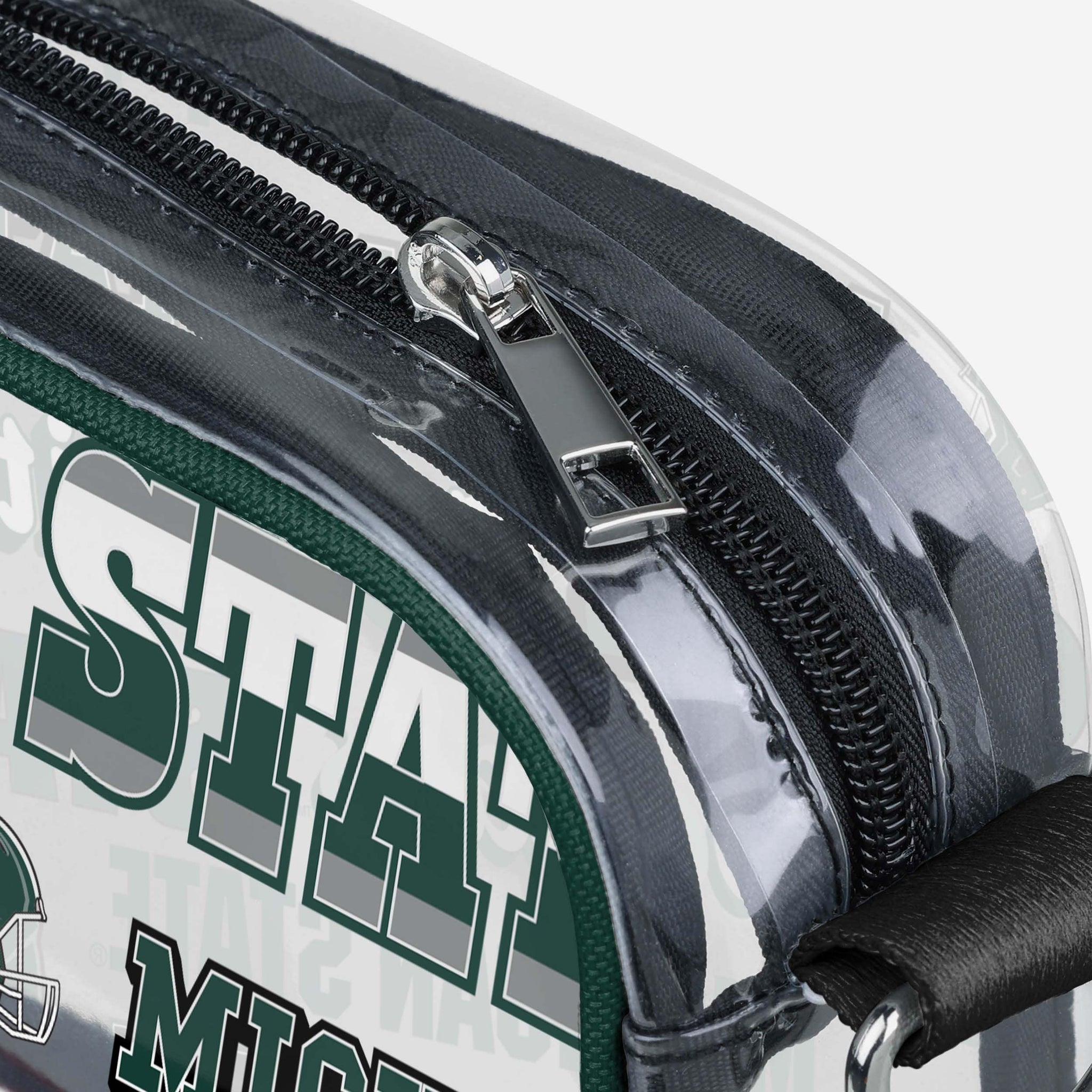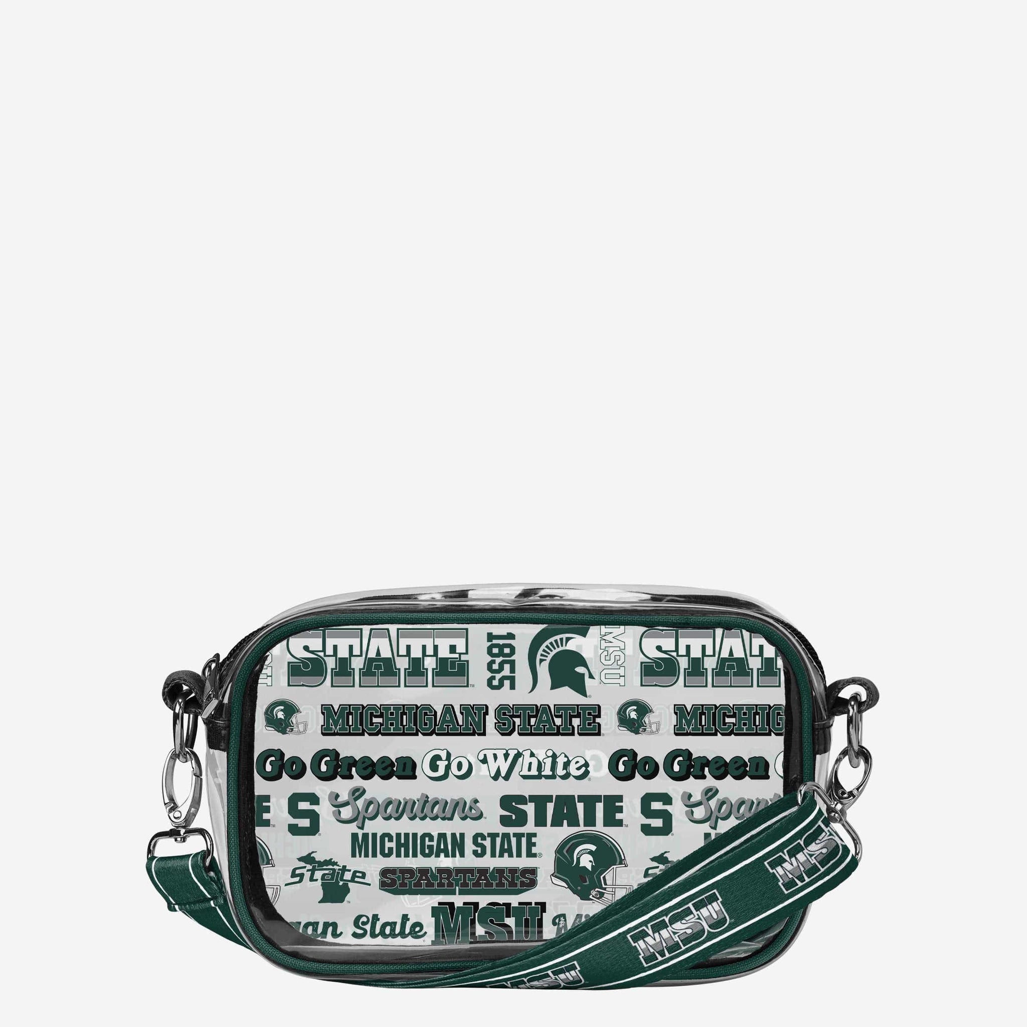 Over your shoulder and off to the game. Whether you're running errands on the town or running the tailgate in the parking lot, this Michigan State Spartans Repeat Retro Print Clear Crossbody Bag is the perfect way to carry the team like never before.
