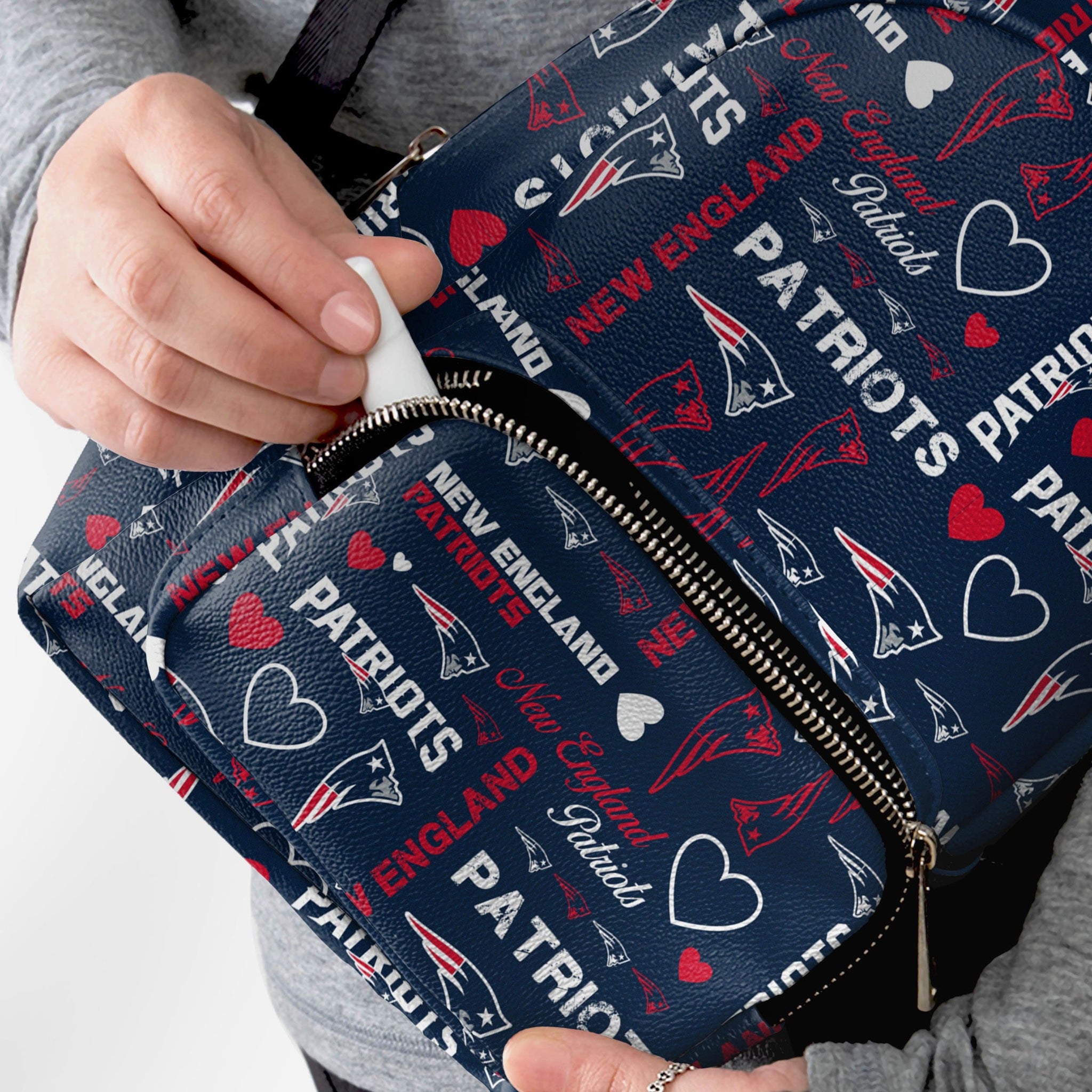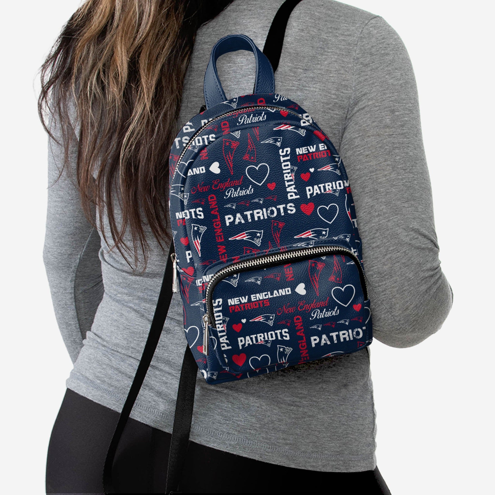 Don't just put the team on your back - Put the team on your back IN STYLE! Introducing the New England Patriots Logo Love Mini Backpack!