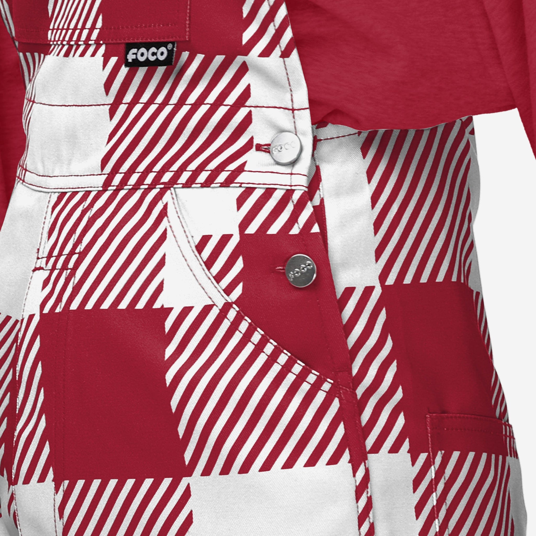 The bib pocket is perfect for storing your phone, makeup, jewelry, skincare products, fragrances, or other essentials, and the adjustable bib shoulder straps ensure a comfortable fit. Two back pockets provide even more storage space which will come in handy when you're out with the girls and showing off your trendy clothes. These overalls are made of sturdy and functional woven polyester canvas that is lightweight and breathable for maximum comfort while you're rocking this trendy and fashion-forward fan gear. They are long enough to provide coverage and durability, so you can focus on cheering on your team without worrying about your outfit. Just don't be surprised if a fellow fan asks for some help chopping wood when they see you in this epic lumberjack style.