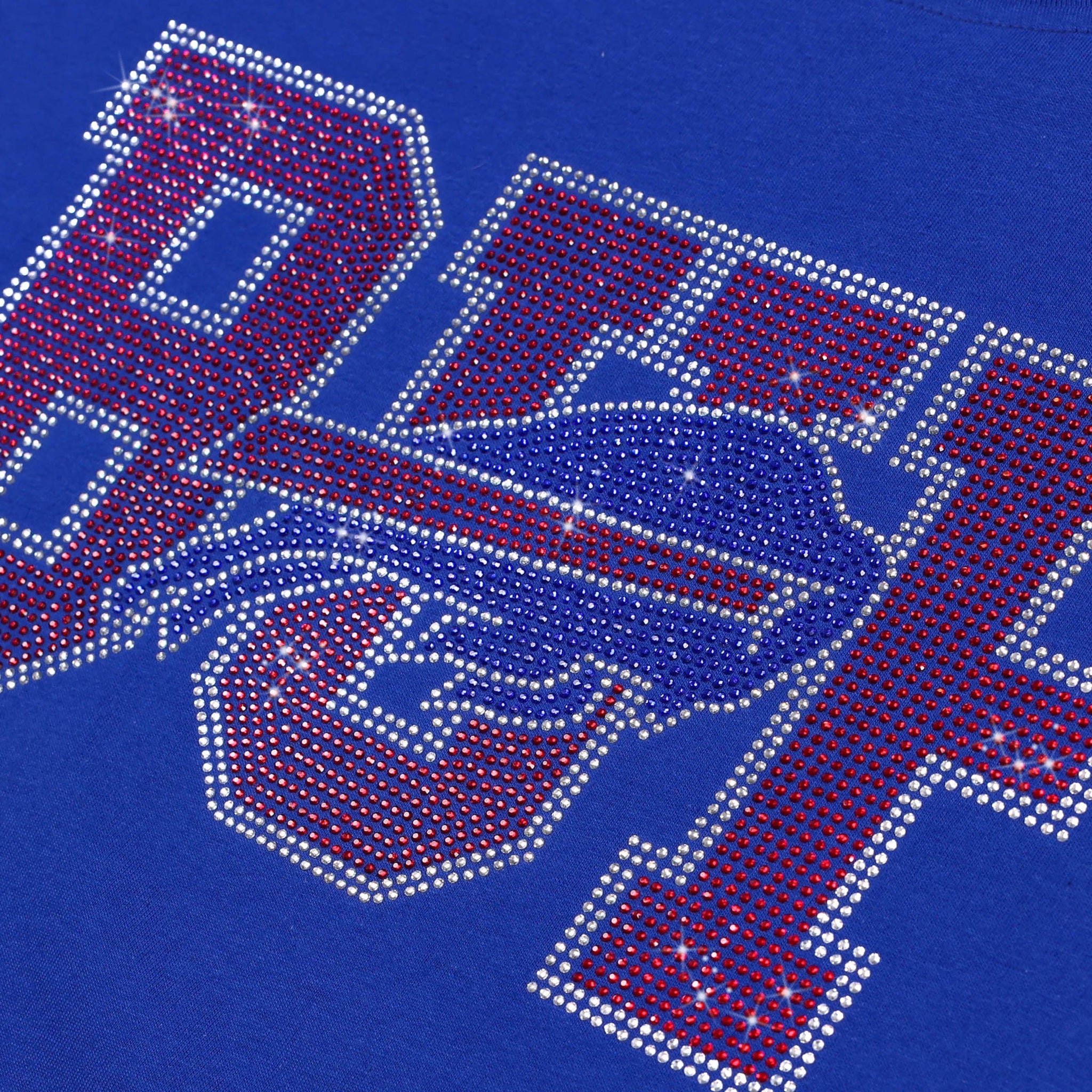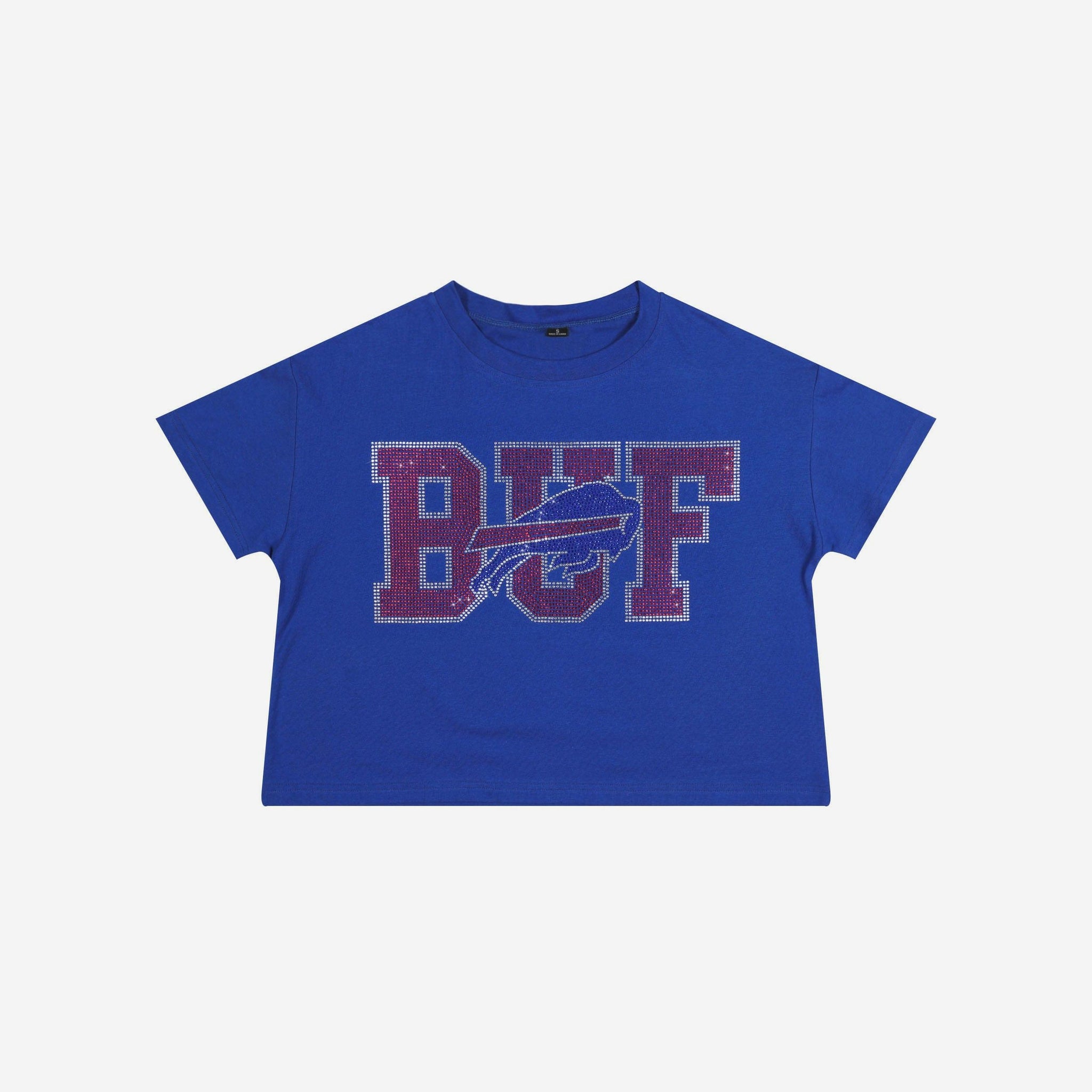 Victory looks good on you, and so will this Buffalo Bills Womens Rhinestone Logo Crop Top. With its flattering cropped fit and dazzling team pride, this top is your go-to for standing out in the crowd and showing up for your squad in style.