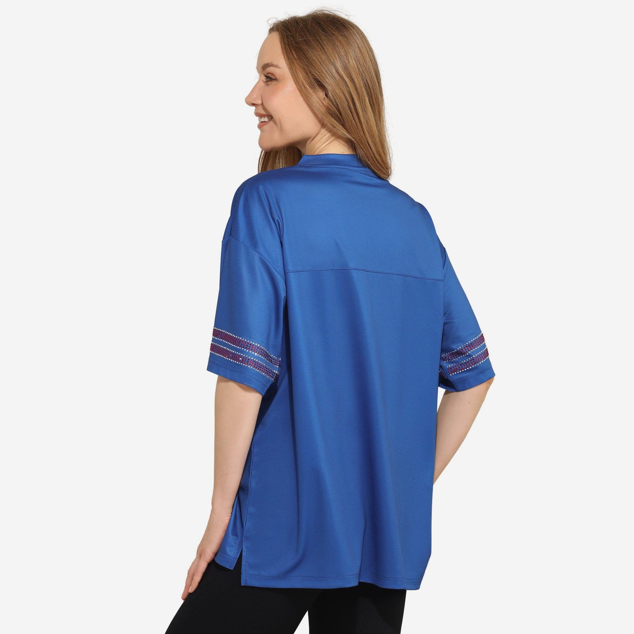 Buffalo Bills Womens Rhinestone Logo Oversized V-Neck Mesh T-Shirt