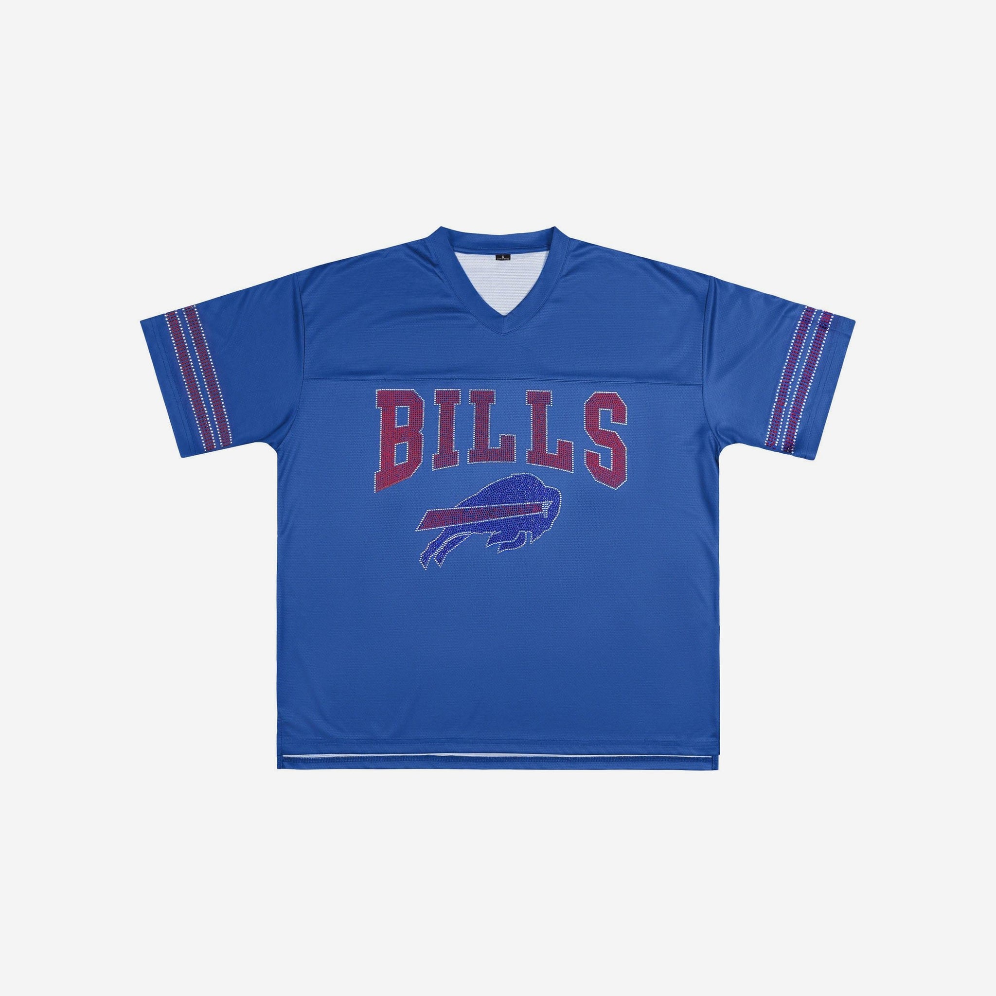 Buffalo Bills Womens Rhinestone Logo Oversized V-Neck Mesh T-Shirt FOCO S - FOCO.com