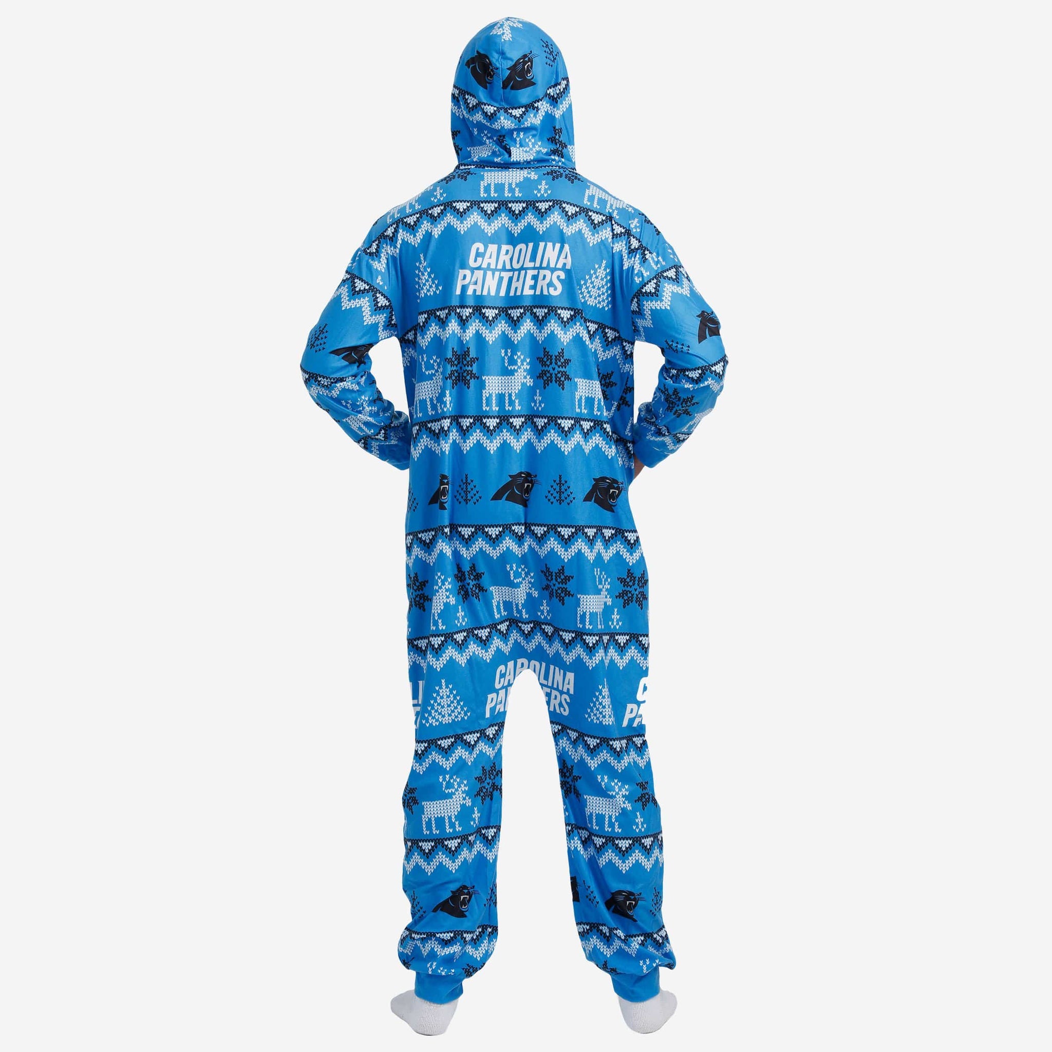 Get some matching family pajamas and dress to impress this holiday season! You won't want to miss these onesie team pajamas! These men's and women's PJ's are comfortable and show off your team spirit in the form of some sweet one piece jammies. Introducing the Carolina Panthers Ugly Pattern One Piece Pajamas! Don't forget to take your holiday photo with the whole family wearing matching Christmas pajamas!