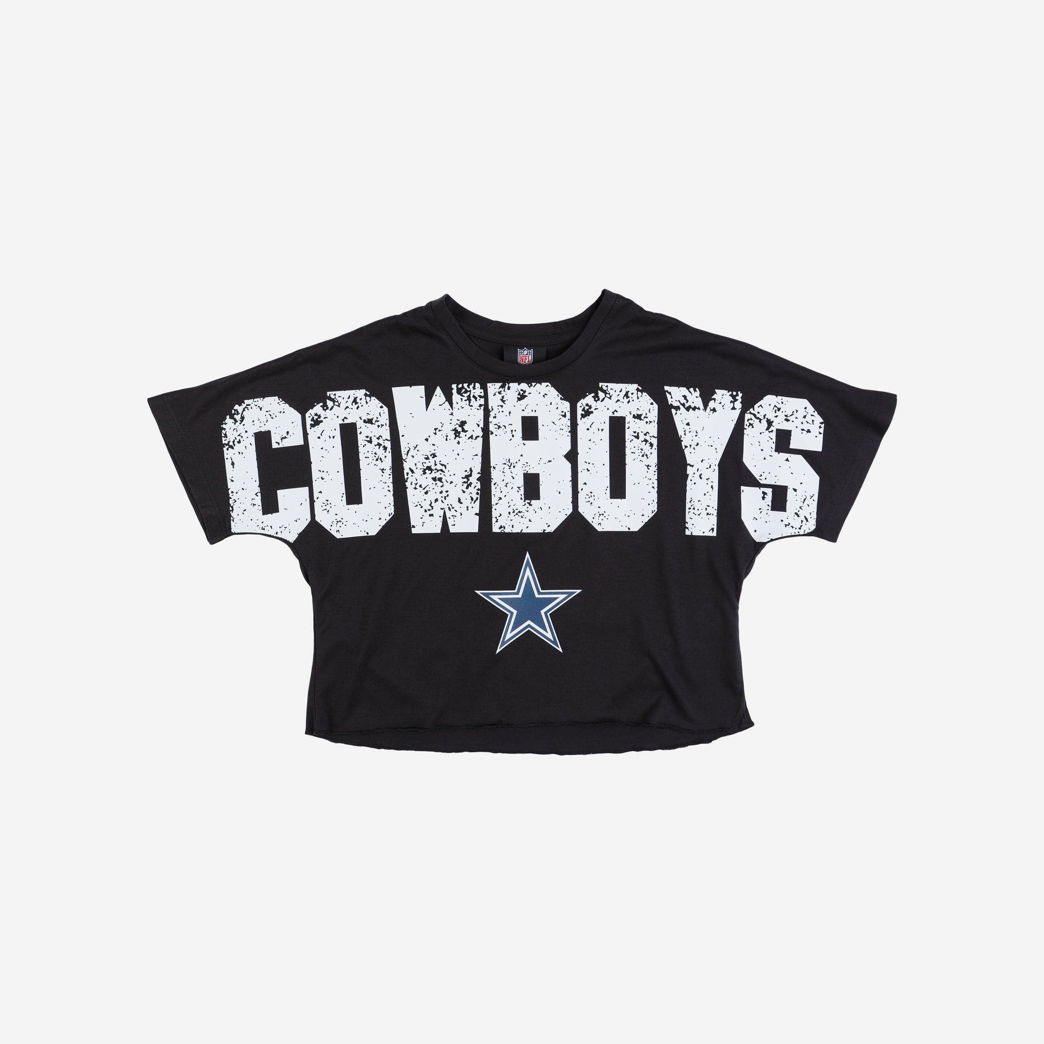 Dallas Cowboys Womens Petite Distressed Wordmark Crop Top FOCO S - FOCO.com