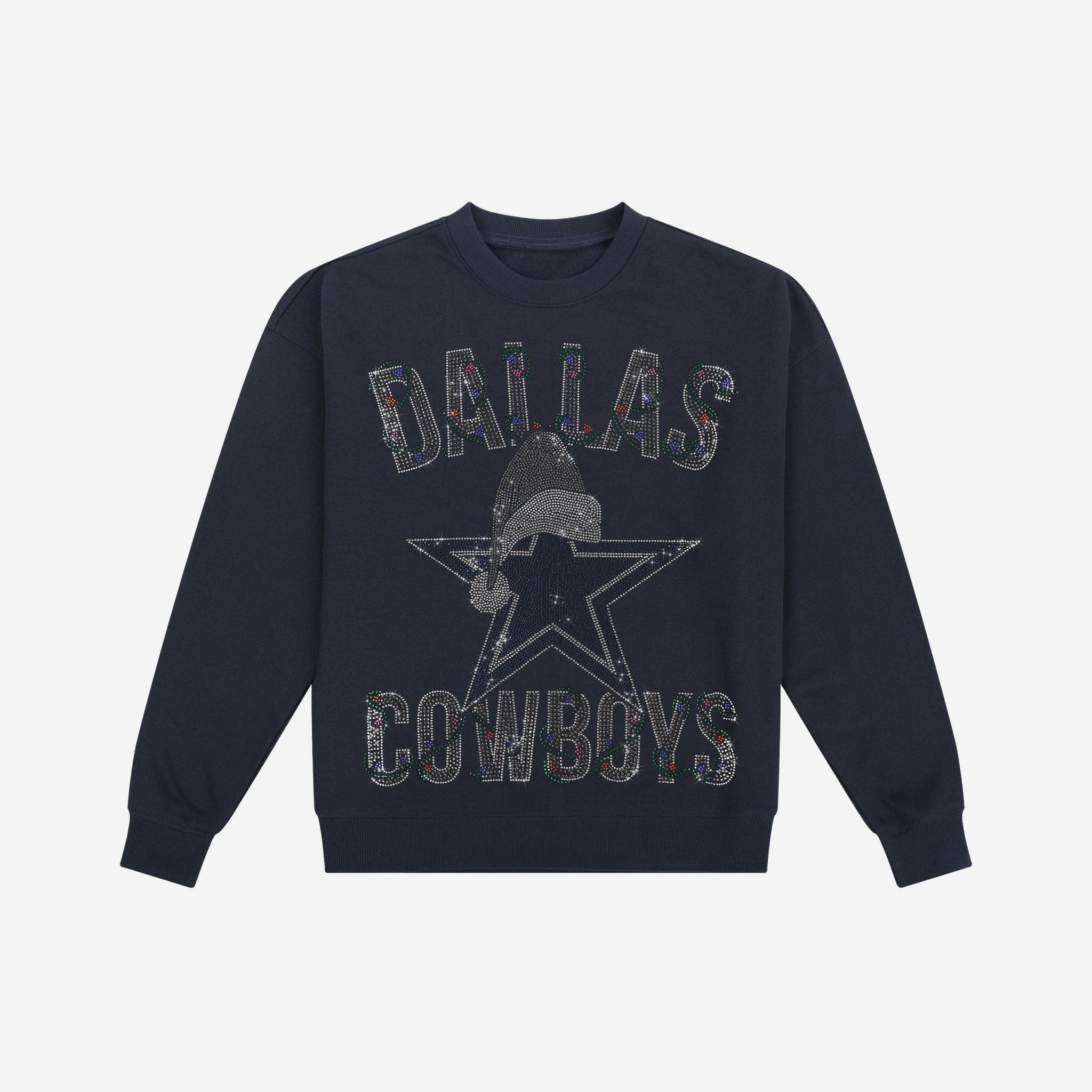 Santa's making a list, and he’s checking it twice! Bling it on! It's time to turn up the twinkle and let your fan fit do the talking. This Dallas Cowboys Womens Rhinestone Logo Oversized Holiday Crew Neck Sweatshirt is made for those who like their cozy with a little extra shine. From game day to every day, it’s the perfect way to stay warm and wow-worthy during the holiday season.