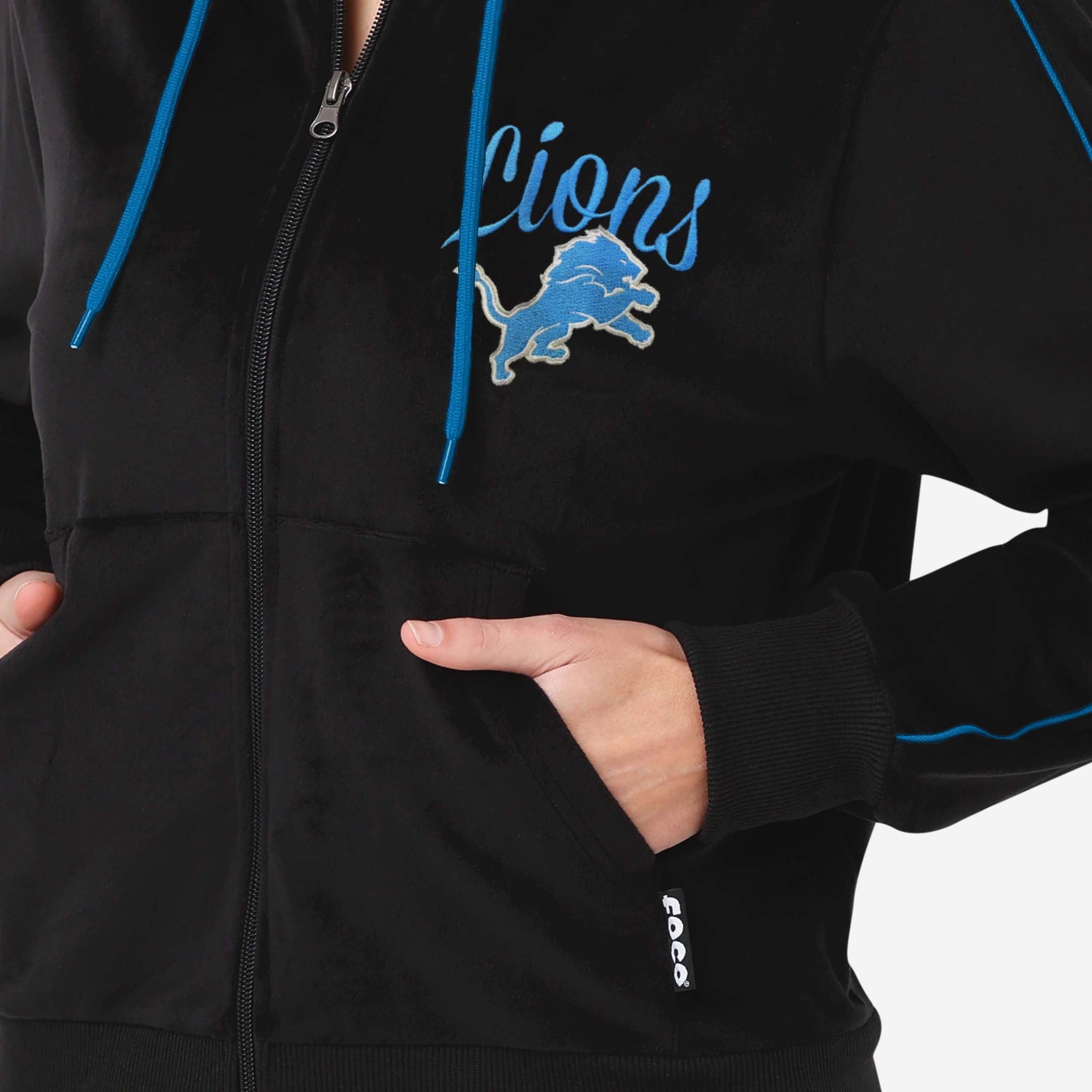 Zip up and bring fandom and fashion together in perfect harmony. This Detroit Lions Women's Velour Zip Up Top is about to be your new favorite fashion teammate.