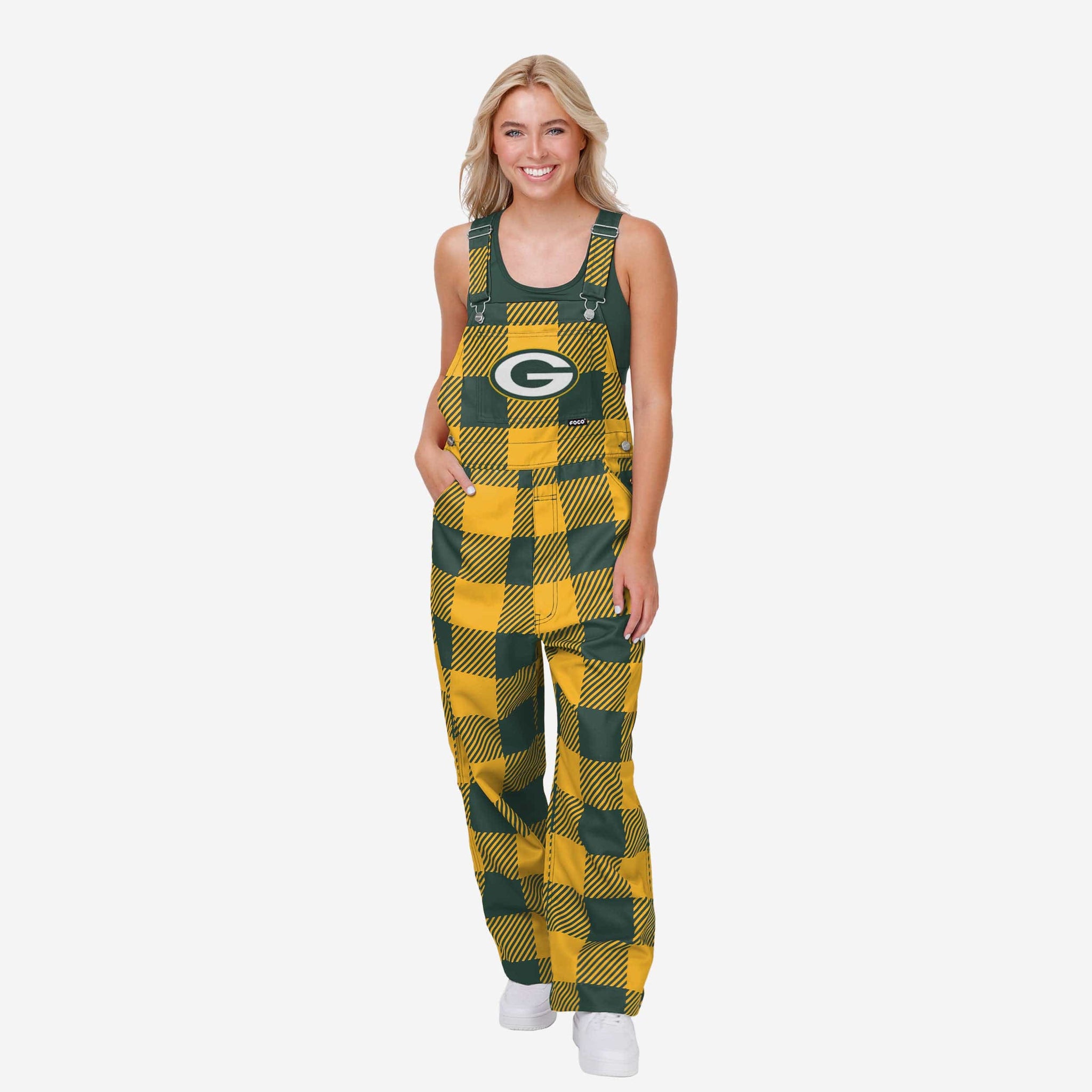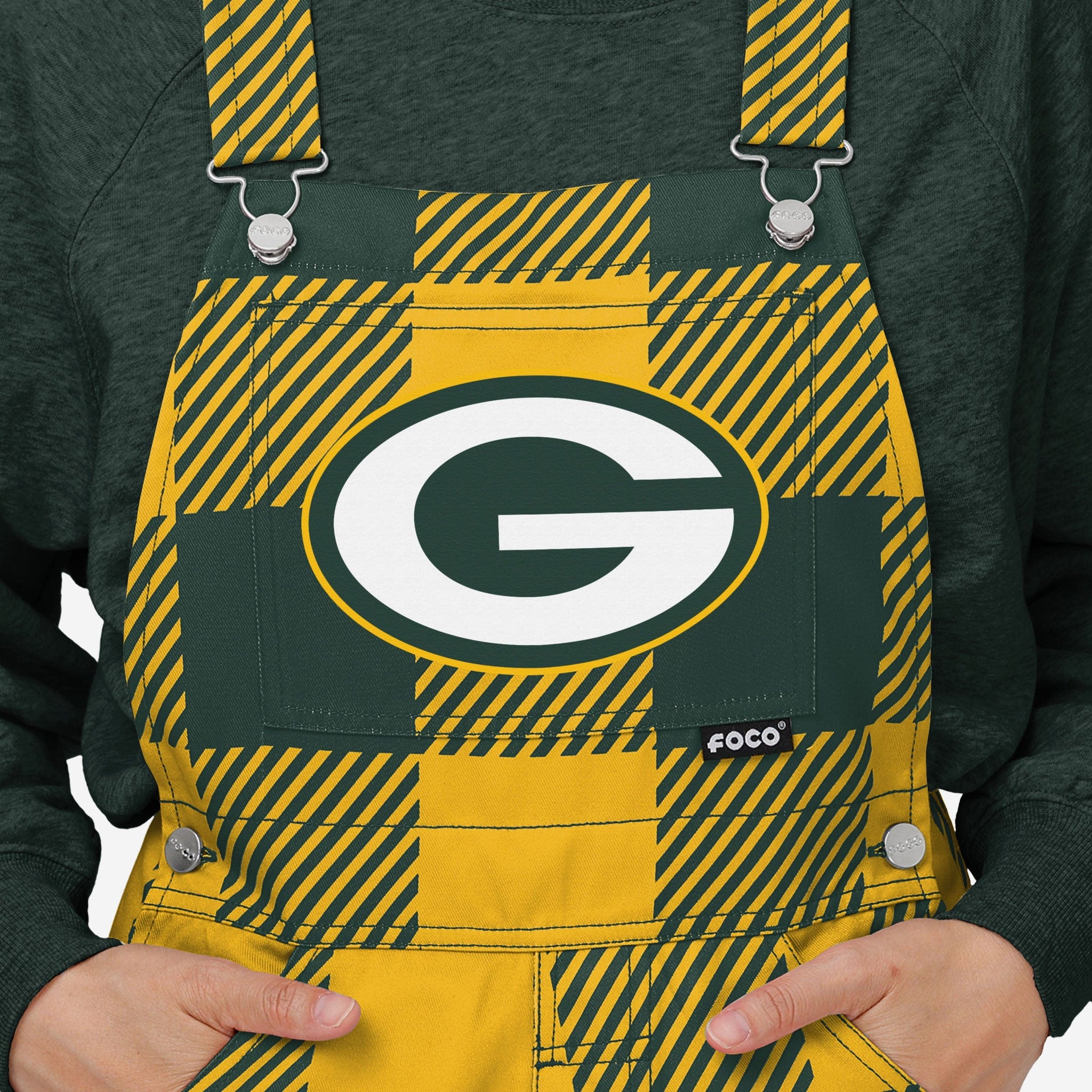 Green Bay Packers Womens Plaid Bib Overalls FOCO - FOCO.com