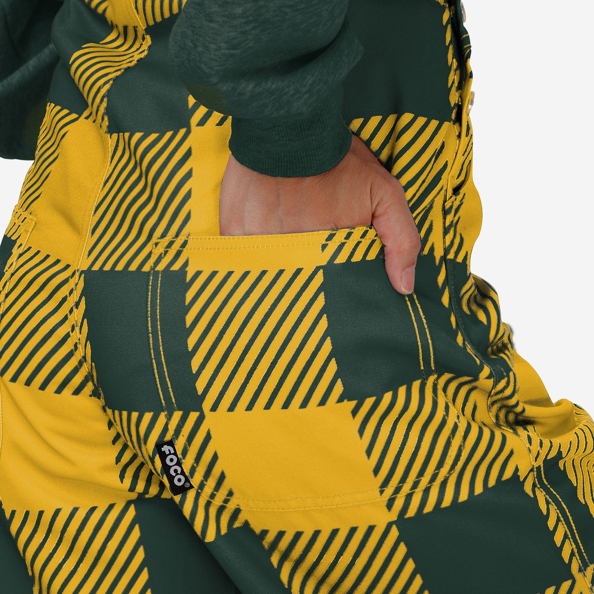 Green Bay Packers Womens Plaid Bib Overalls FOCO XS - FOCO.com