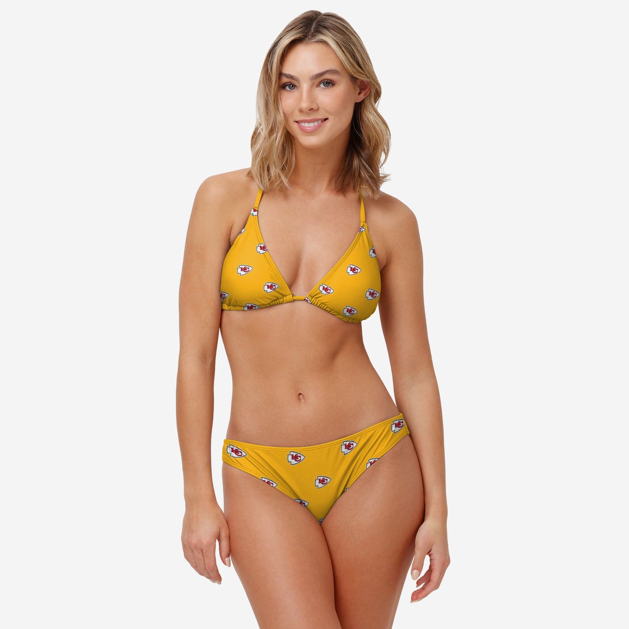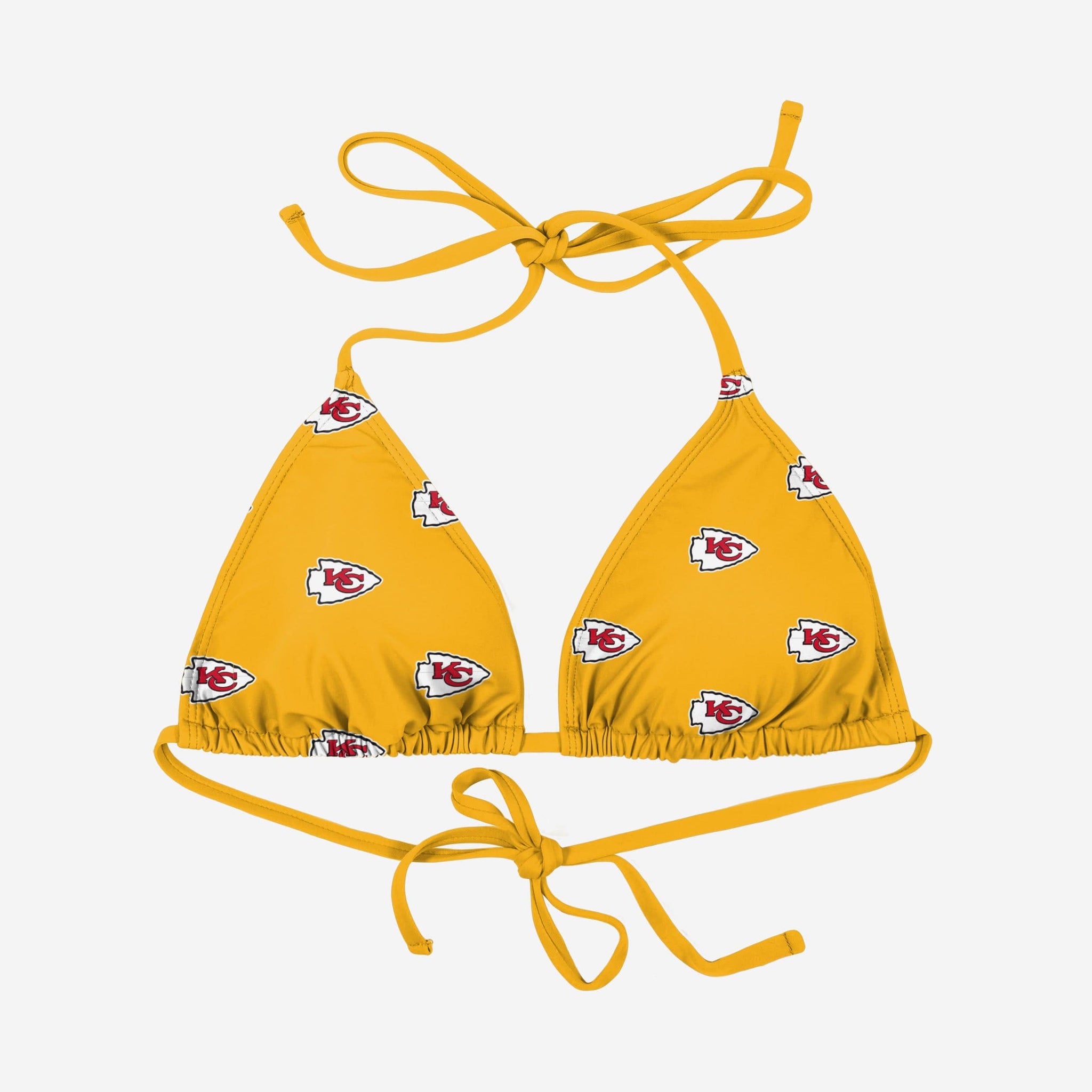 Take your team pride poolside and lounge like a legend in the Kansas City Chiefs Women's Mini Print Bikini Top!