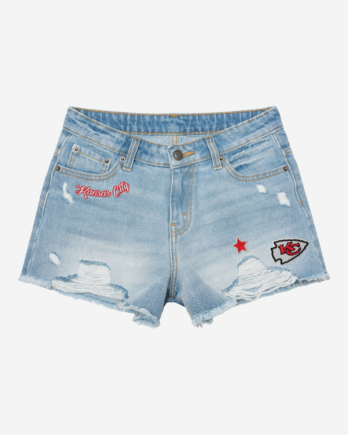 Kansas City Chiefs Womens Team Logo Denim Shorts FOCO 0 - FOCO.com