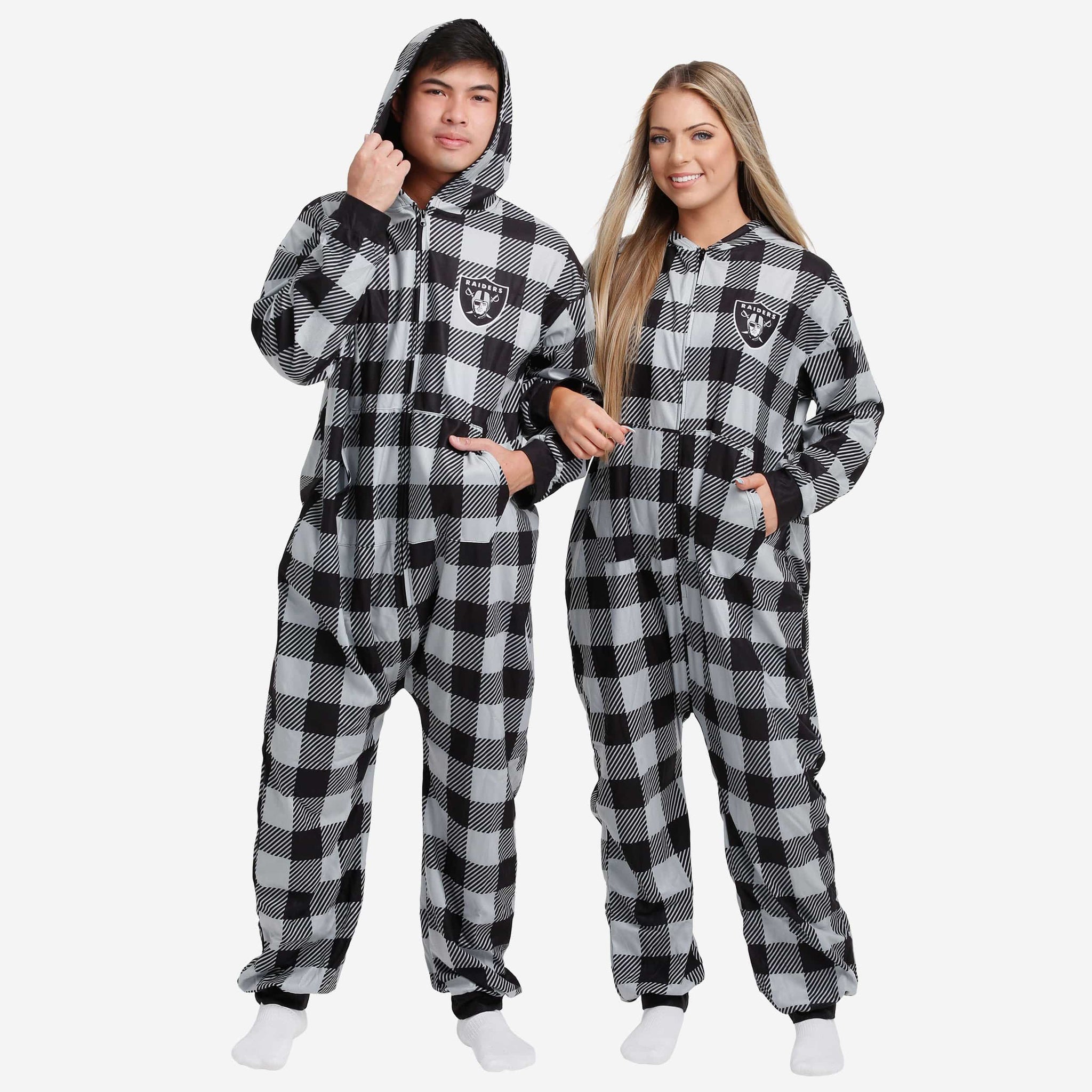 Get some matching family pajamas and dress to impress this holiday season! You won't want to miss these onesie team pajamas! These men's and women's PJ's are comfortable and show off your team spirit in the form of some sweet one piece jammies. Introducing the Las Vegas Raiders Plaid One Piece Pajamas! Don't forget to take your holiday photo with the whole family wearing matching Christmas pajamas!