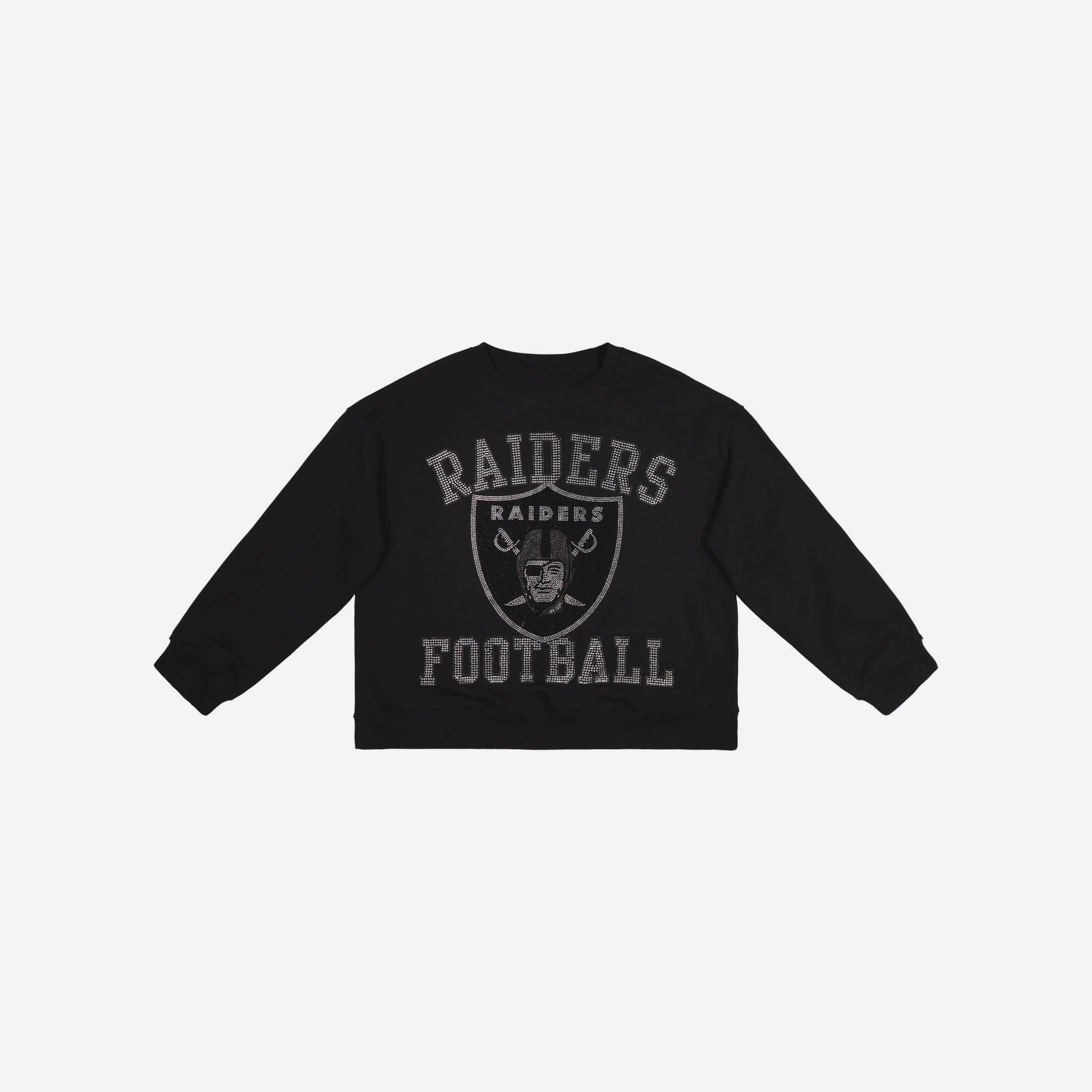 Las Vegas Raiders Womens Rhinestone Logo Oversized Crew Neck Sweatshirt