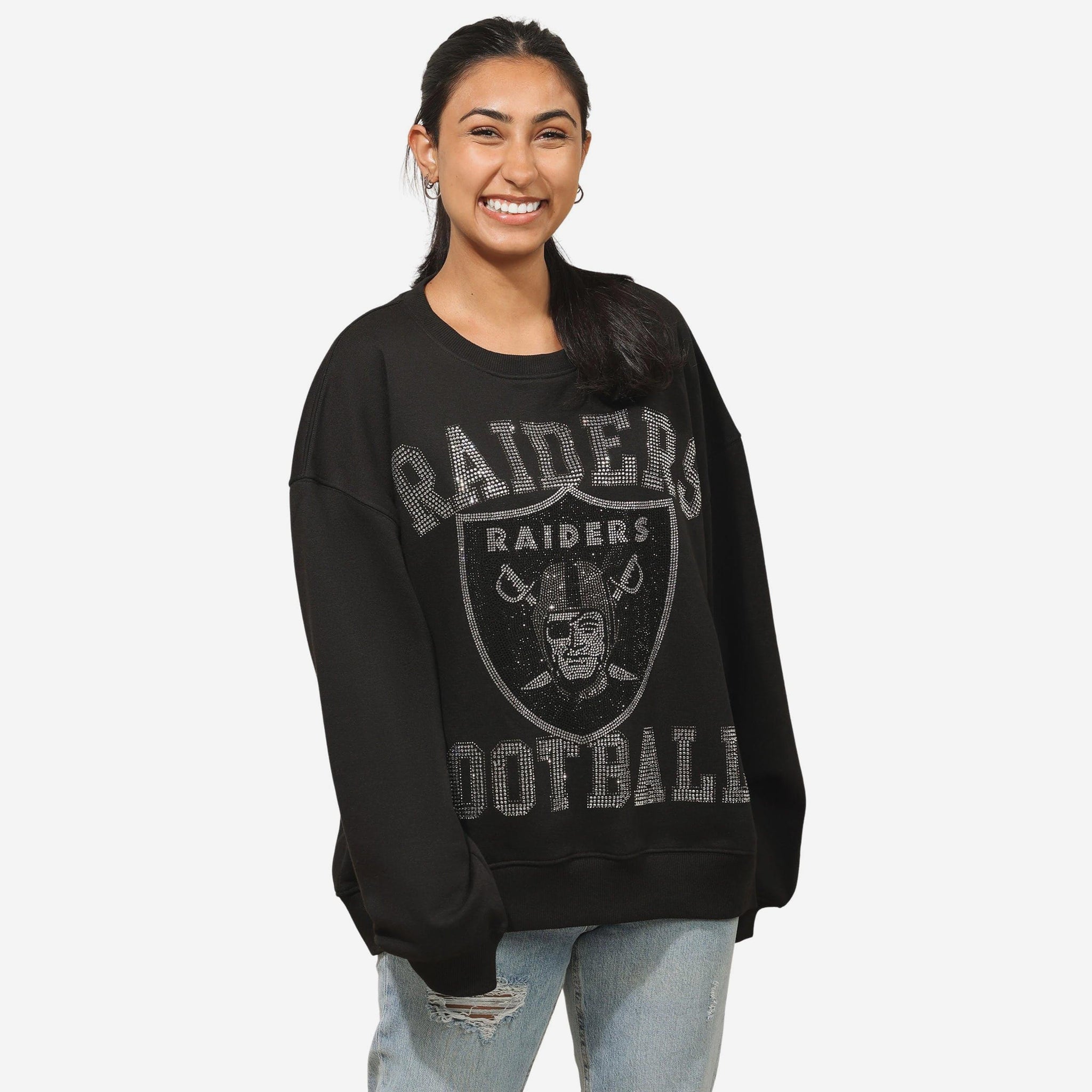 Las Vegas Raiders Womens Rhinestone Logo Oversized Crew Neck Sweatshirt FOCO S - FOCO.com