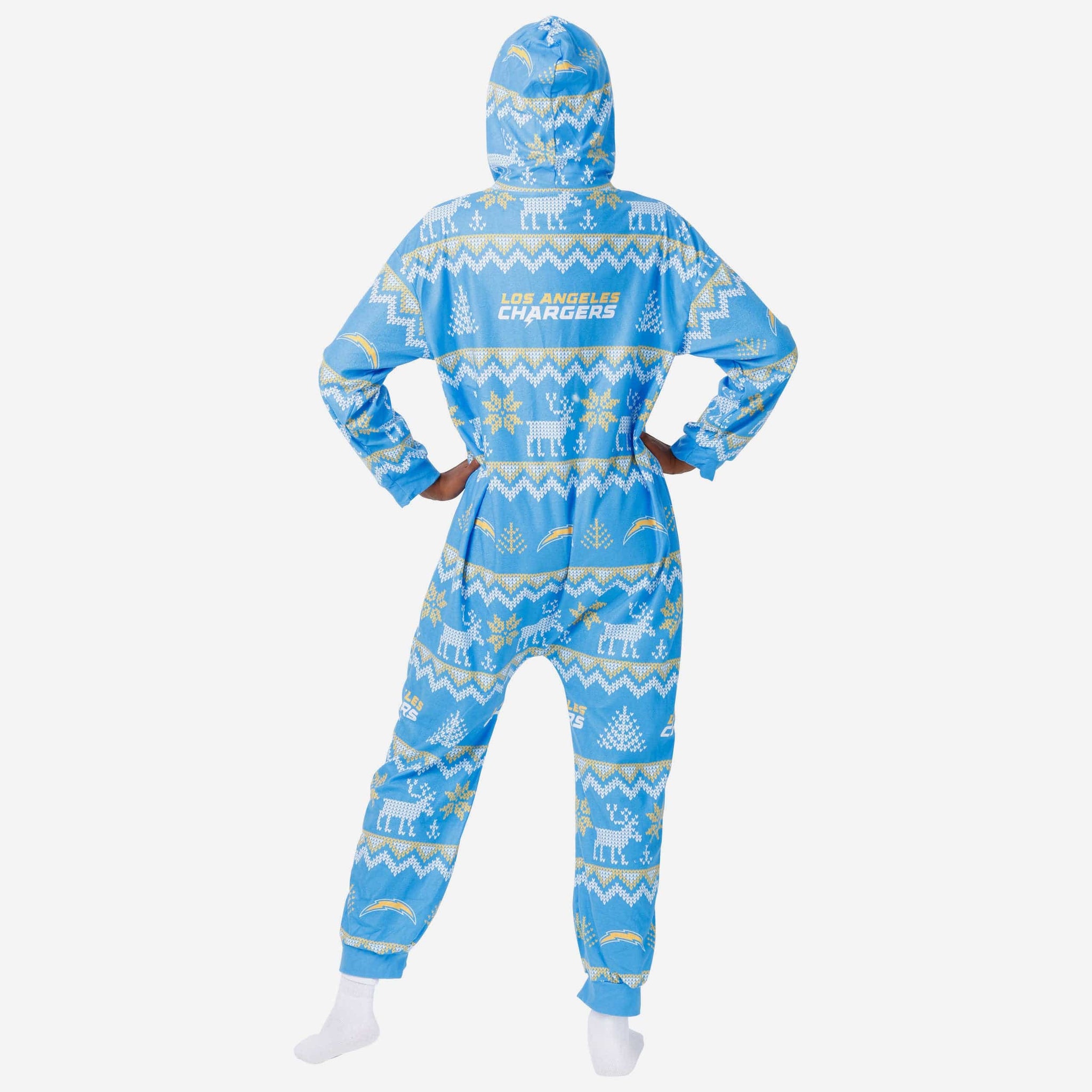 Get some matching family pajamas and dress to impress this holiday season! You won't want to miss these onesie team pajamas! These men's and women's PJ's are comfortable and show off your team spirit in the form of some sweet one piece jammies. Introducing the Los Angeles Chargers Ugly Pattern One Piece Pajamas! Don't forget to take your holiday photo with the whole family wearing matching Christmas pajamas!