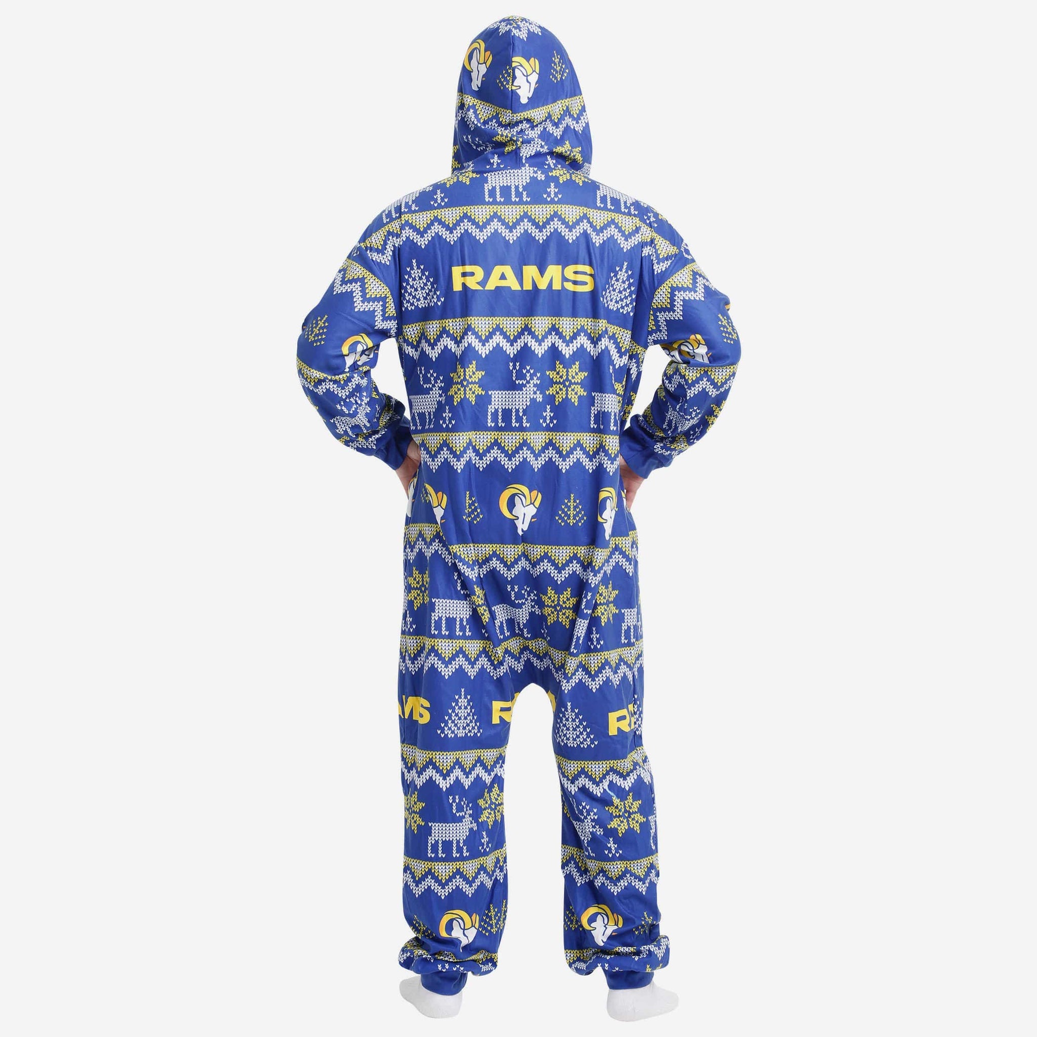 Get some matching family pajamas and dress to impress this holiday season! You won't want to miss these onesie team pajamas! These men's and women's PJ's are comfortable and show off your team spirit in the form of some sweet one piece jammies. Introducing the Los Angeles Rams Ugly Pattern One Piece Pajamas! Don't forget to take your holiday photo with the whole family wearing matching Christmas pajamas!