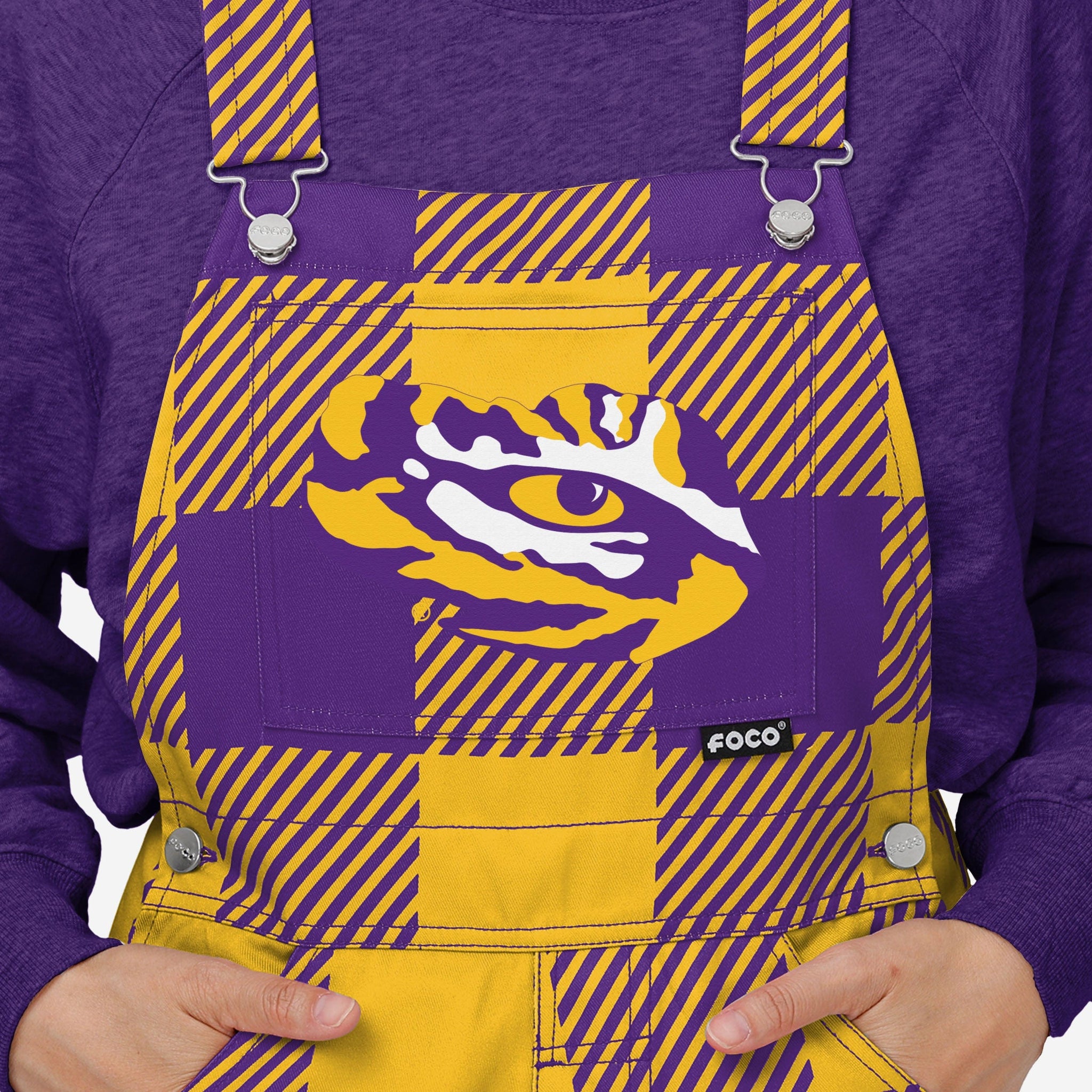 Show your team spirit in these stylish and comfortable LSU Tigers Women's Plaid Bib Overalls. With their all-over team-colored design and bold team logo display, these overalls are the perfect way to show your support for the LSU Tigers while showing off some buffalo plaid fashion for a rustic, rural feel.