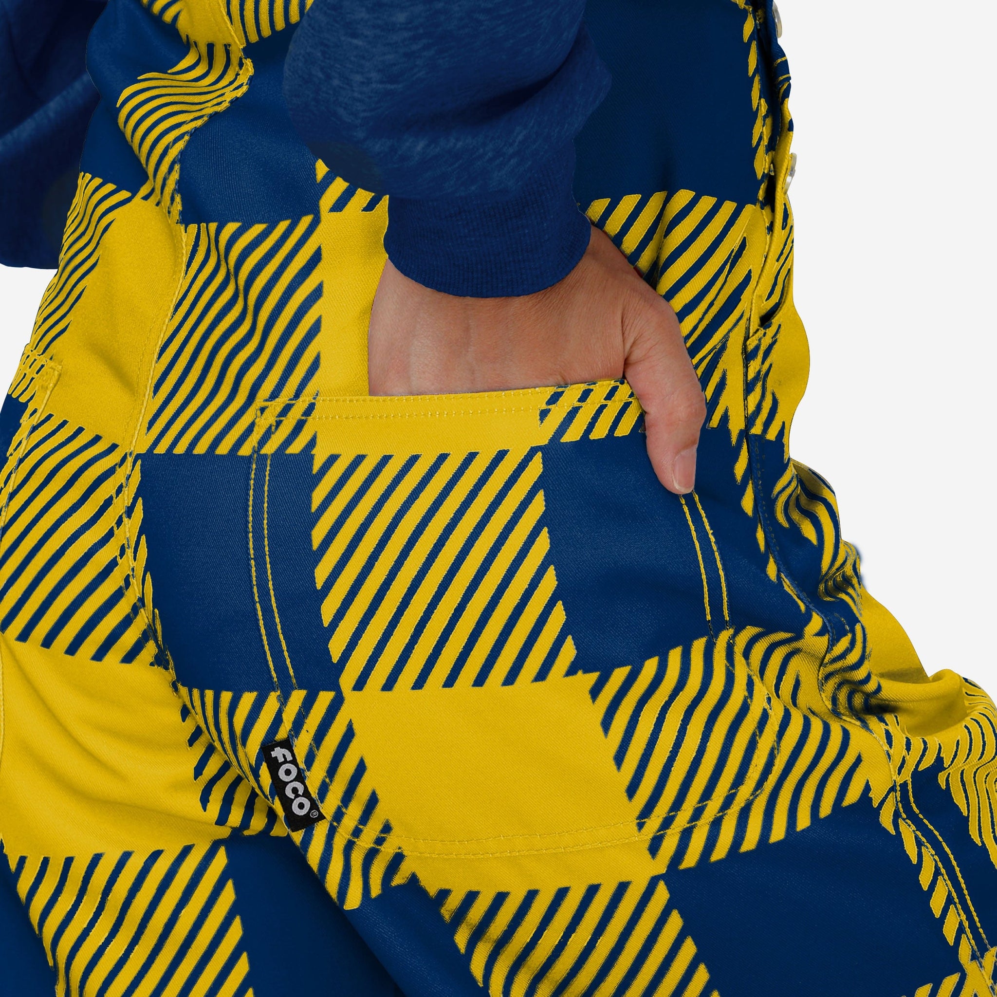 The bib pocket is perfect for storing your phone, makeup, jewelry, skincare products, fragrances, or other essentials, and the adjustable bib shoulder straps ensure a comfortable fit. Two back pockets provide even more storage space which will come in handy when you're out with the girls and showing off your trendy clothes. These overalls are made of sturdy and functional woven polyester canvas that is lightweight and breathable for maximum comfort while you're rocking this trendy and fashion-forward fan gear. They are long enough to provide coverage and durability, so you can focus on cheering on your team without worrying about your outfit. Just don't be surprised if a fellow fan asks for some help chopping wood when they see you in this epic lumberjack style.