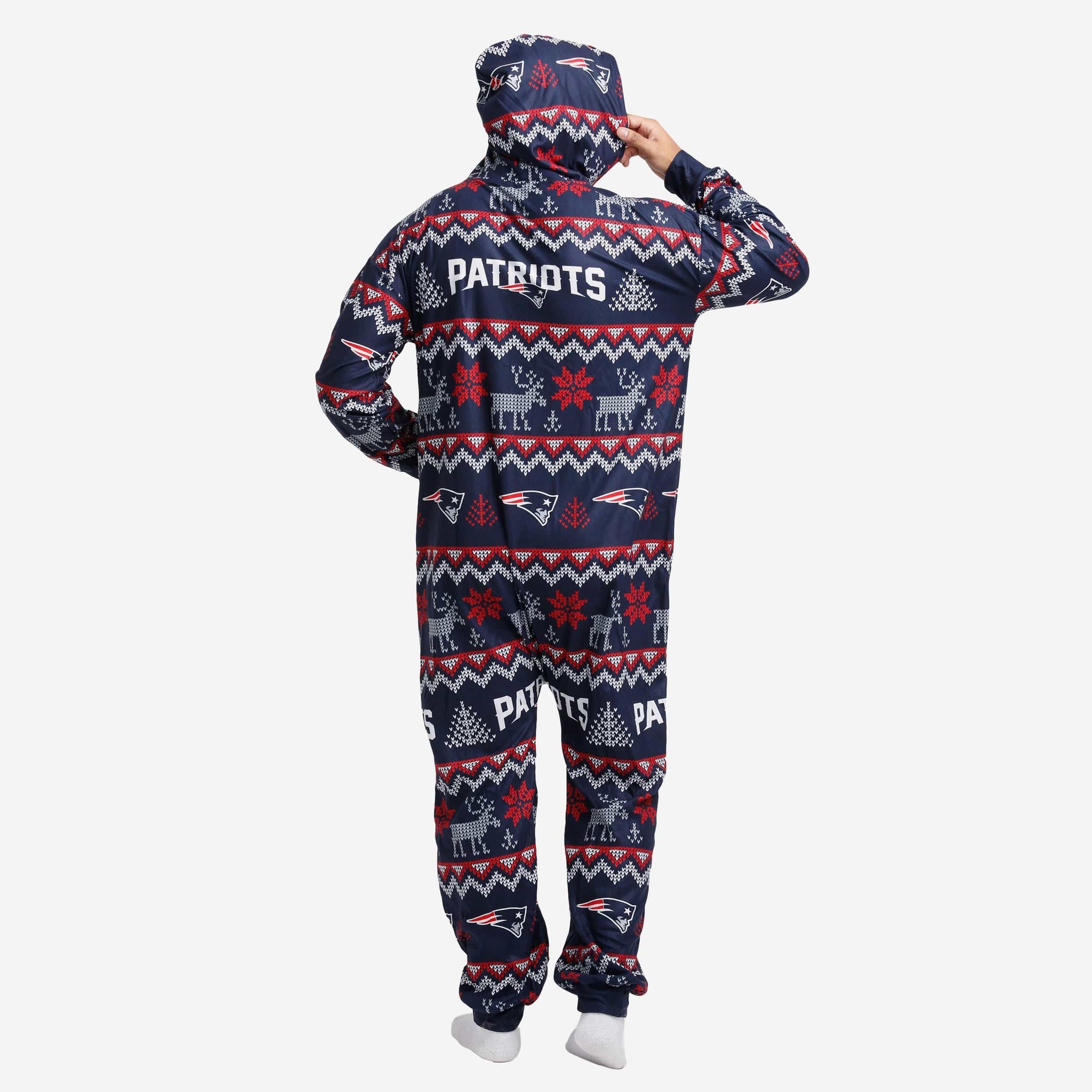 New England Patriots Ugly Pattern One Piece Pajamas FOCO - FOCO.com