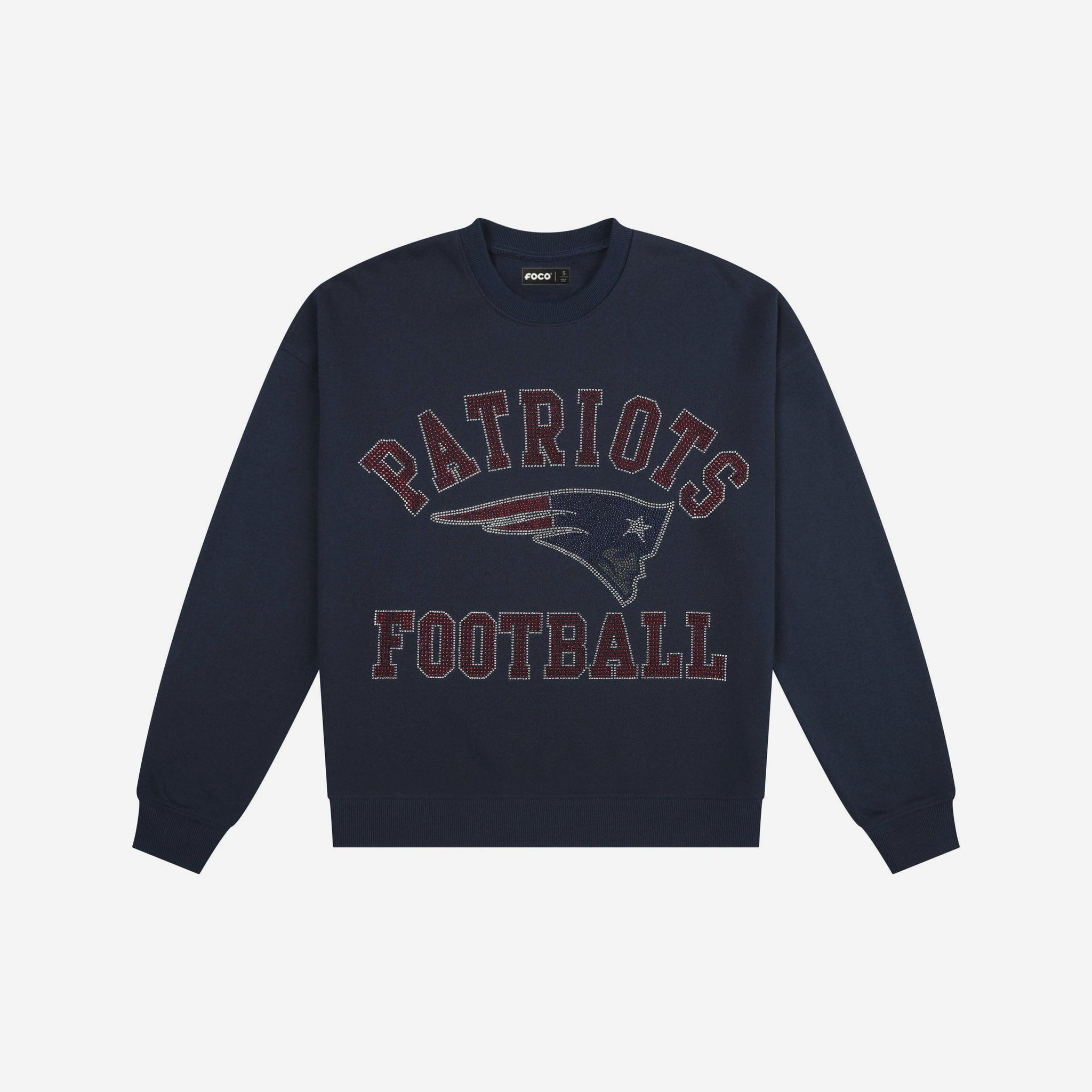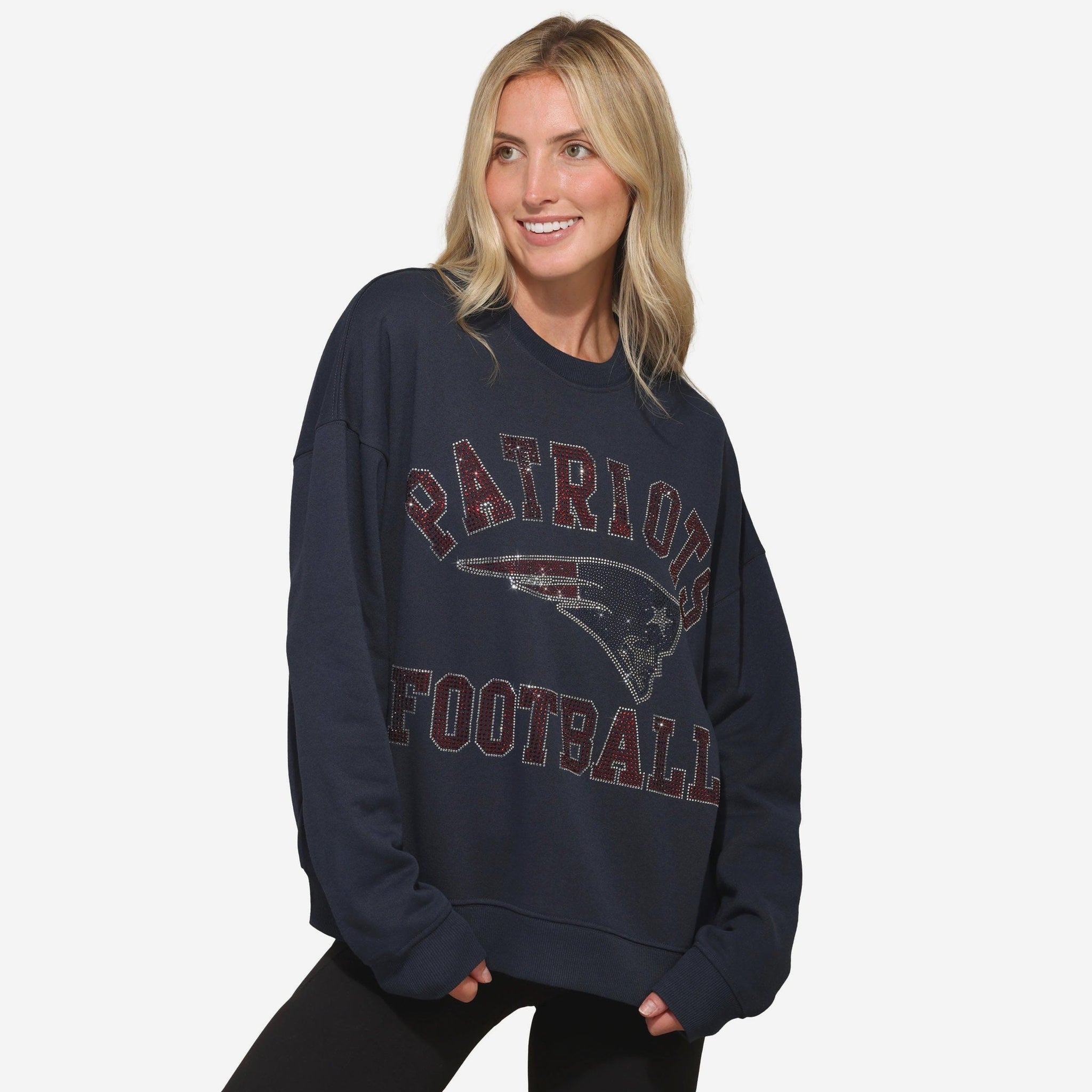 Bling it on! It's time to turn up the twinkle and let your fan fit do the talking. This New England Patriots Womens Rhinestone Logo Oversized Crew Neck Sweatshirt is made for those who like their cozy with a little extra shine. From game day to every day, it’s the perfect way to stay warm and wow-worthy.