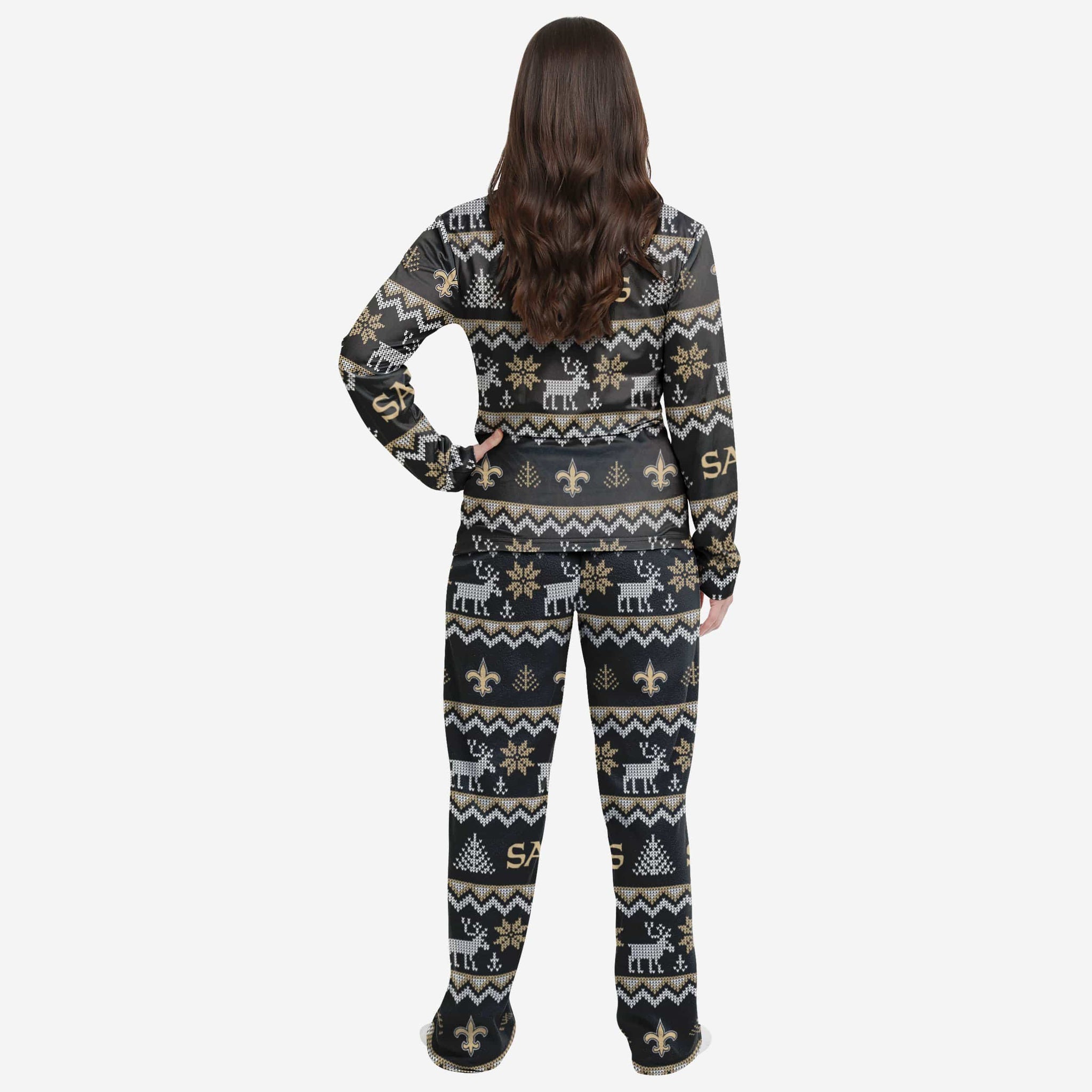 New Orleans Saints Womens Ugly Pattern Family Holiday Pajamas FOCO S - FOCO.com