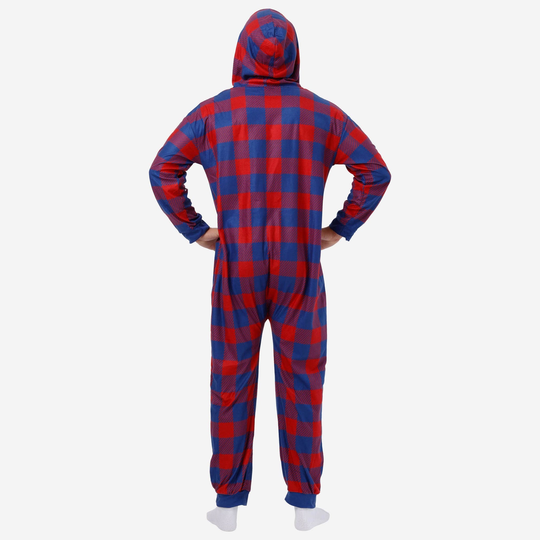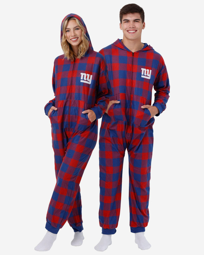Get some matching family pajamas and dress to impress this holiday season! You won't want to miss these onesie team pajamas! These men's and women's PJ's are comfortable and show off your team spirit in the form of some sweet one piece jammies. Introducing the New York Giants Plaid One Piece Pajamas! Don't forget to take your holiday photo with the whole family wearing matching Christmas pajamas!