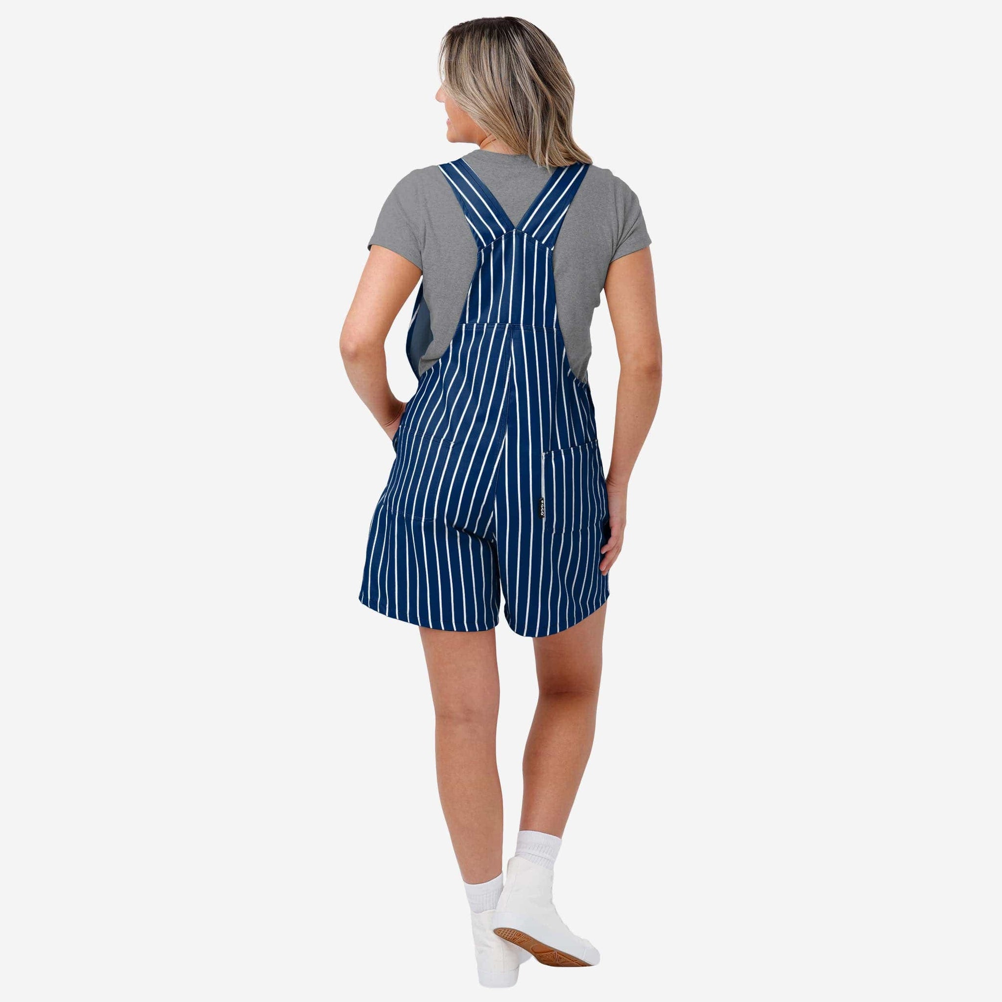 The bib pocket is perfect for storing your phone, makeup, jewelry, skincare products, fragrances, or other essentials, and the adjustable bib shoulder straps ensure a comfortable fit. Two back pockets provide even more storage space. These shortalls are made of sturdy and functional woven polyester canvas that is lightweight and breathable. They provide coverage and durability, so you can focus on cheering on your team without worrying about your outfit. This pinstripe style is so perfect for gameday that there's a good chance you'll be on the receiving end of a whole lot of postgame high fives and fist bumps, because your fellow fans will deem you the star of the game, responsible for every big play.