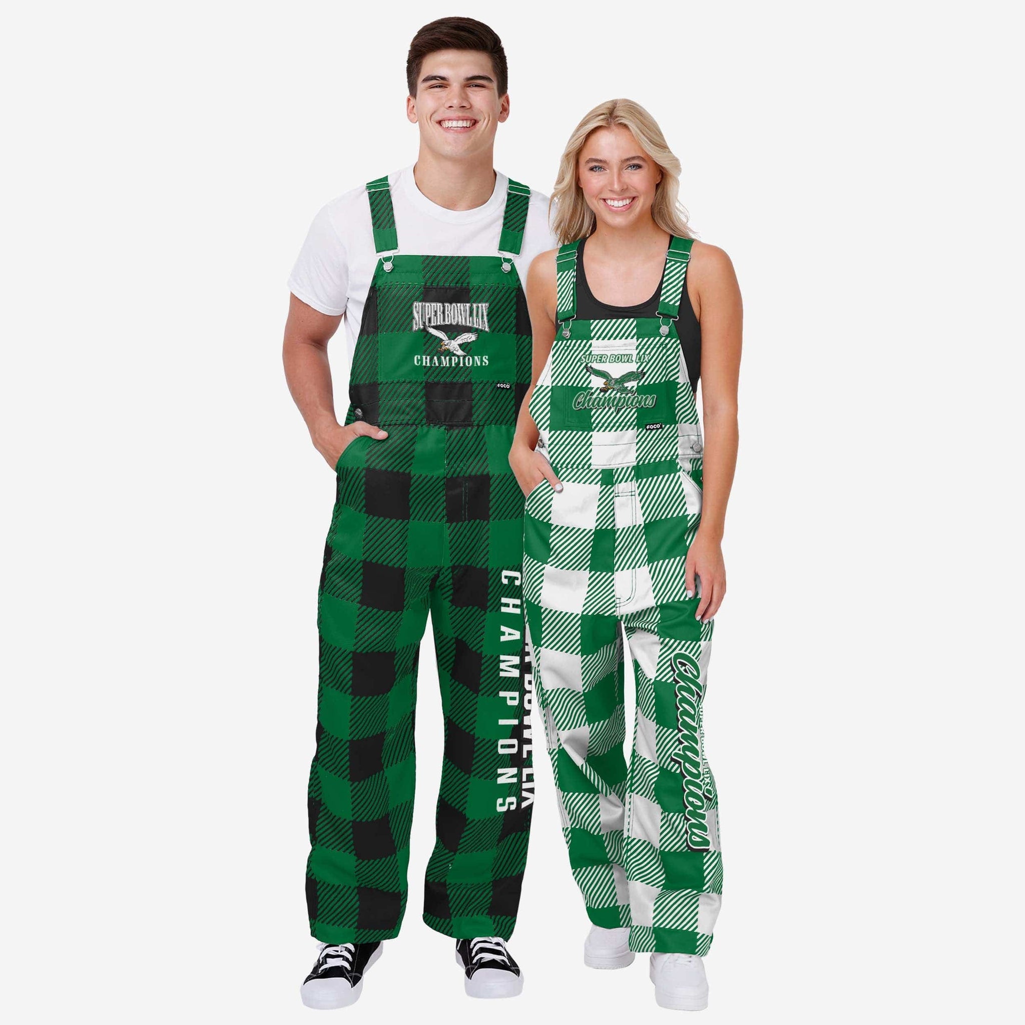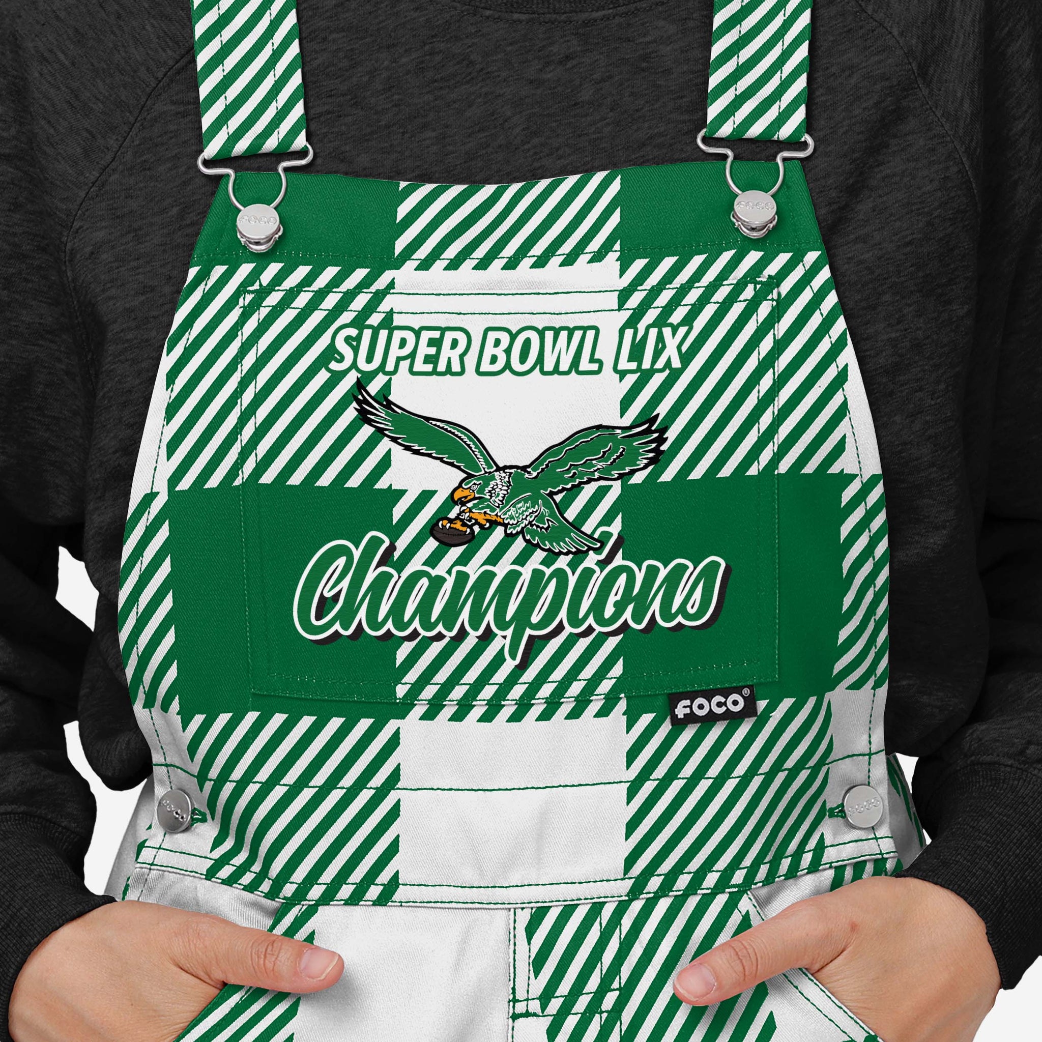 Show your team spirit in these stylish and comfortable Philadelphia Eagles Super Bowl LIX Champions Kelly Green Men's Plaid Bib Overalls. With their all-over team-colored design and bold Champions Kelly Greenhip logo display, these overalls are the perfect way to show your support for the Super Bowl winners while showing off some buffalo plaid fashion for a rustic, rural feel.