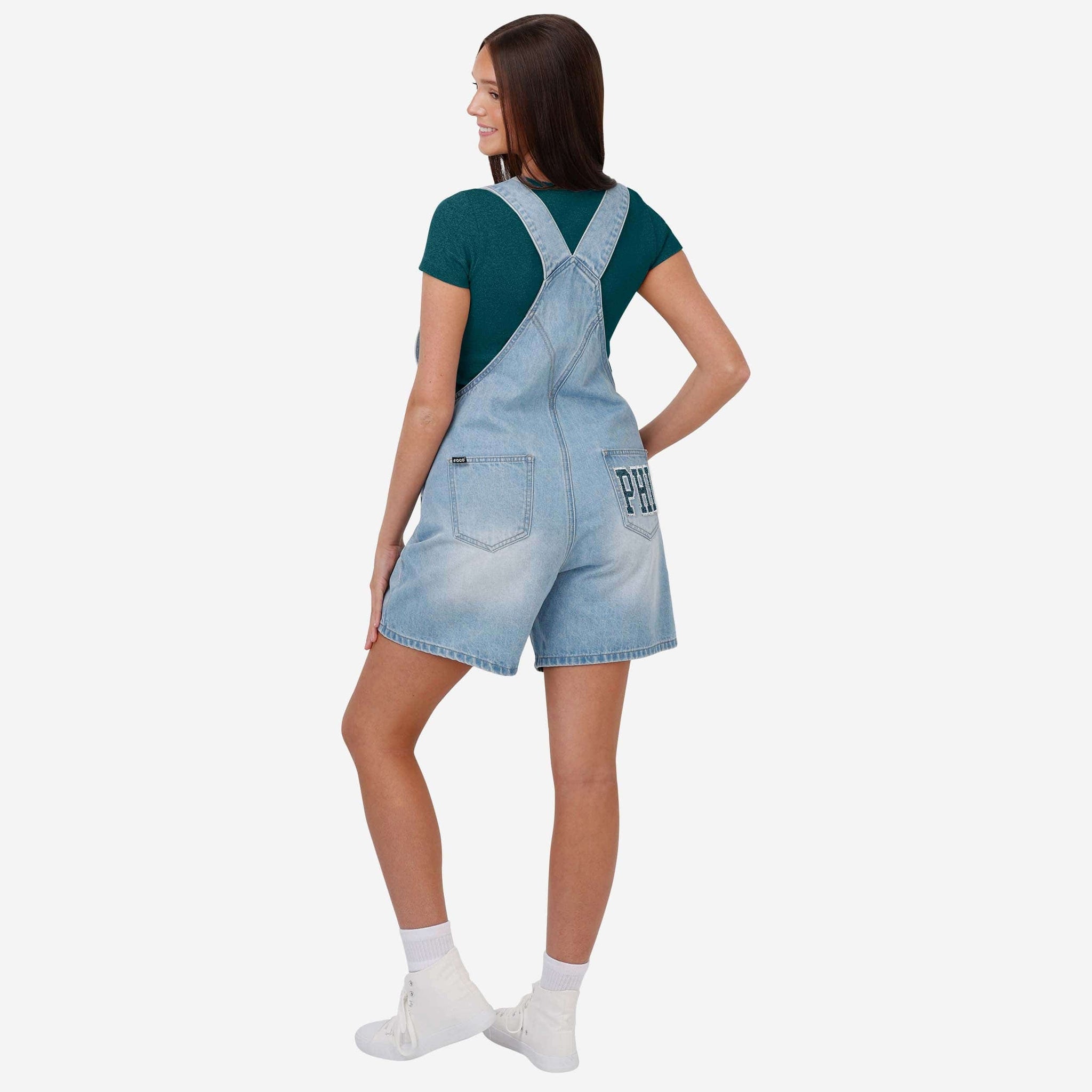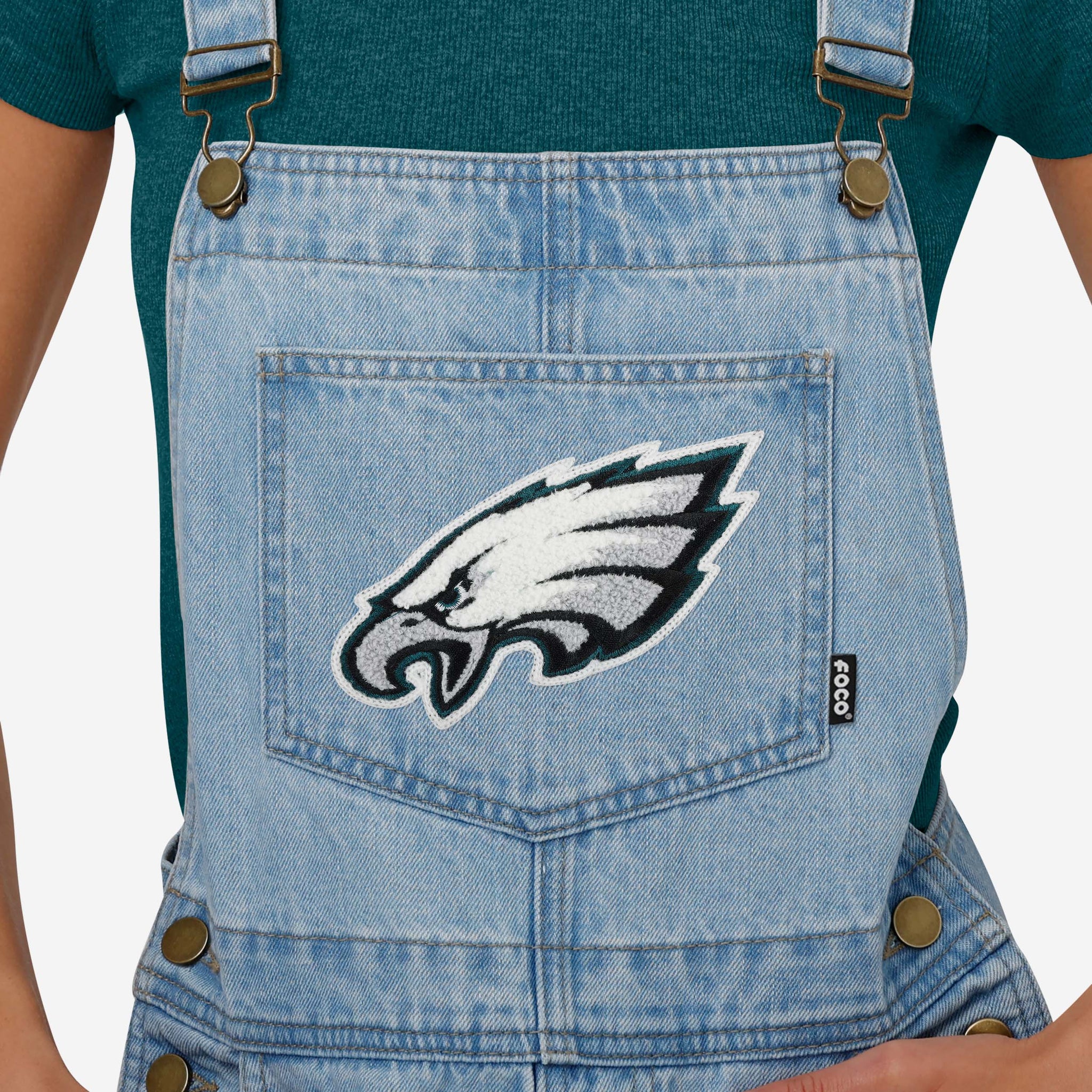 Philadelphia Eagles Womens Big Logo Denim Bib Shortalls FOCO XS - FOCO.com
