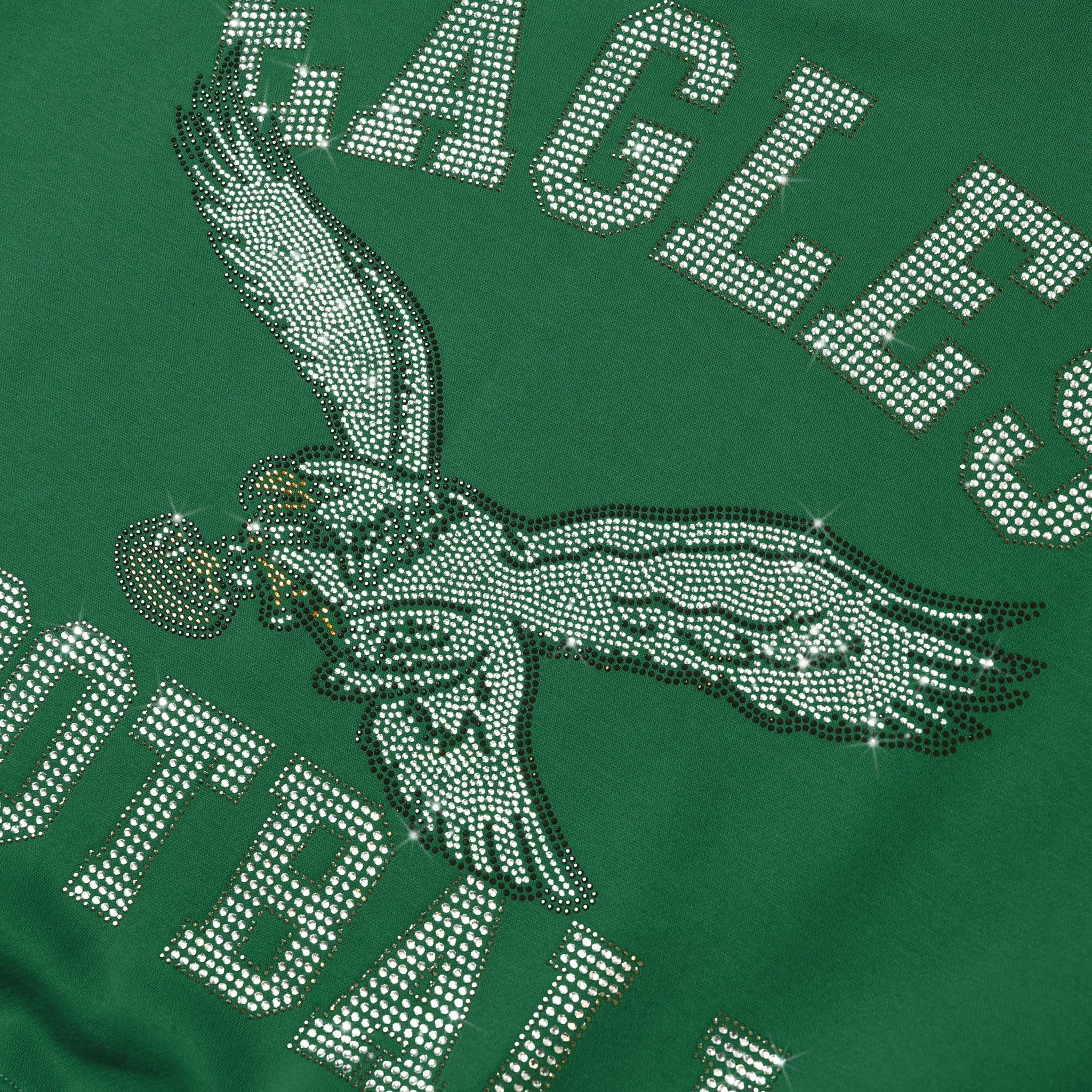 Bling it on! It's time to turn up the twinkle and let your fan fit do the talking. This Philadelphia Eagles Womens Kelly Green Rhinestone Logo Oversized Crew Neck Sweatshirt is made for those who like their cozy with a little extra shine. From game day to every day, it’s the perfect way to stay warm and wow-worthy.
