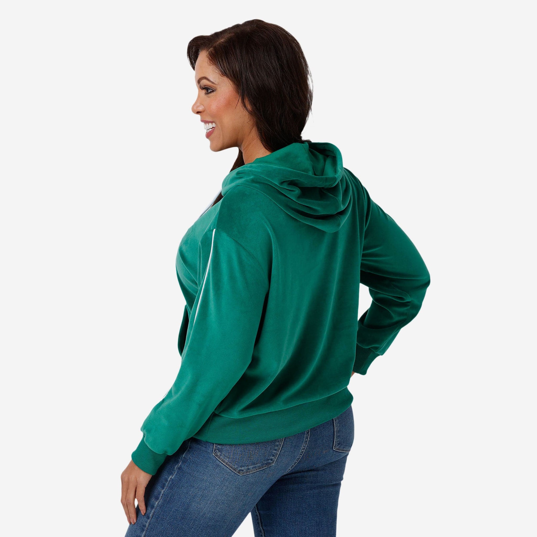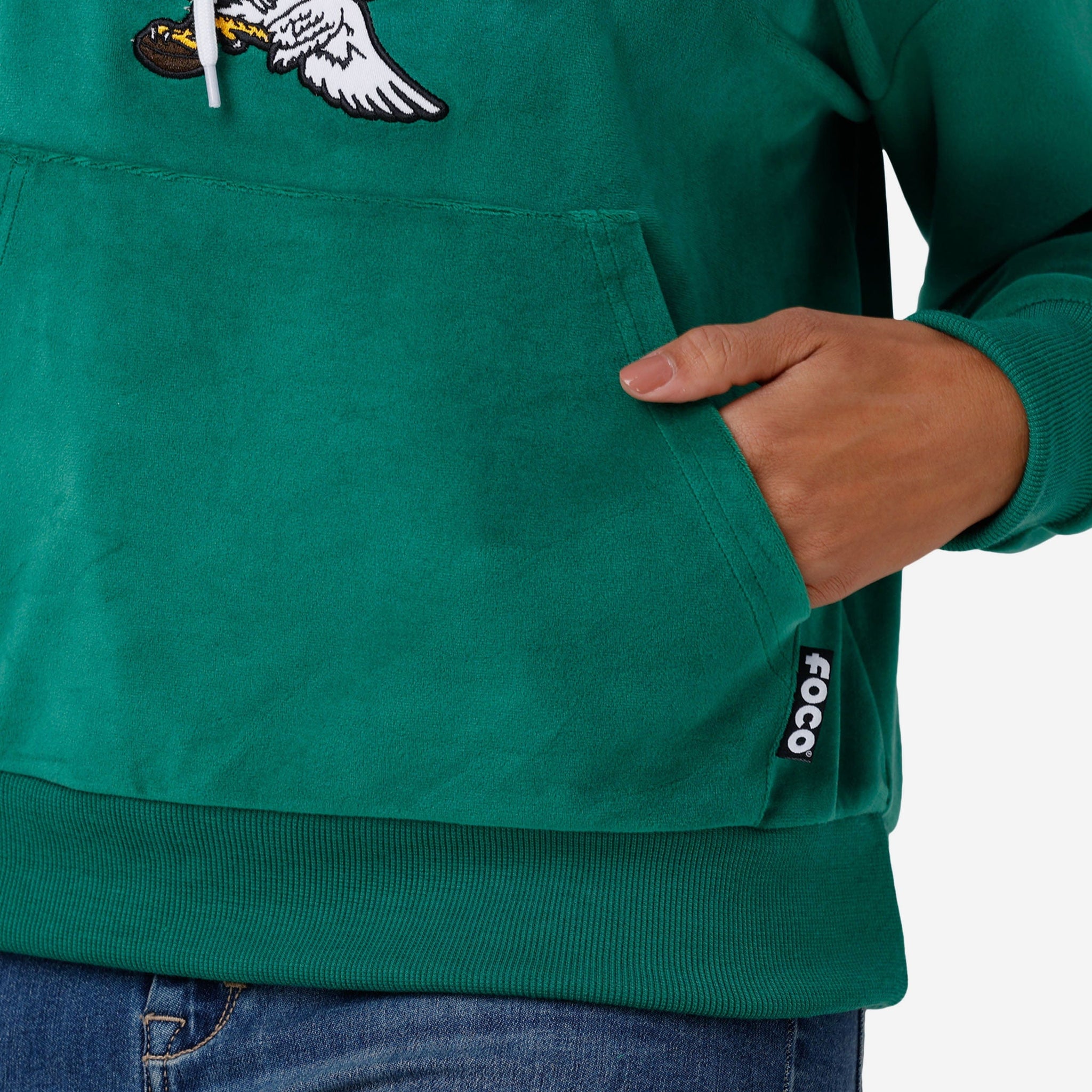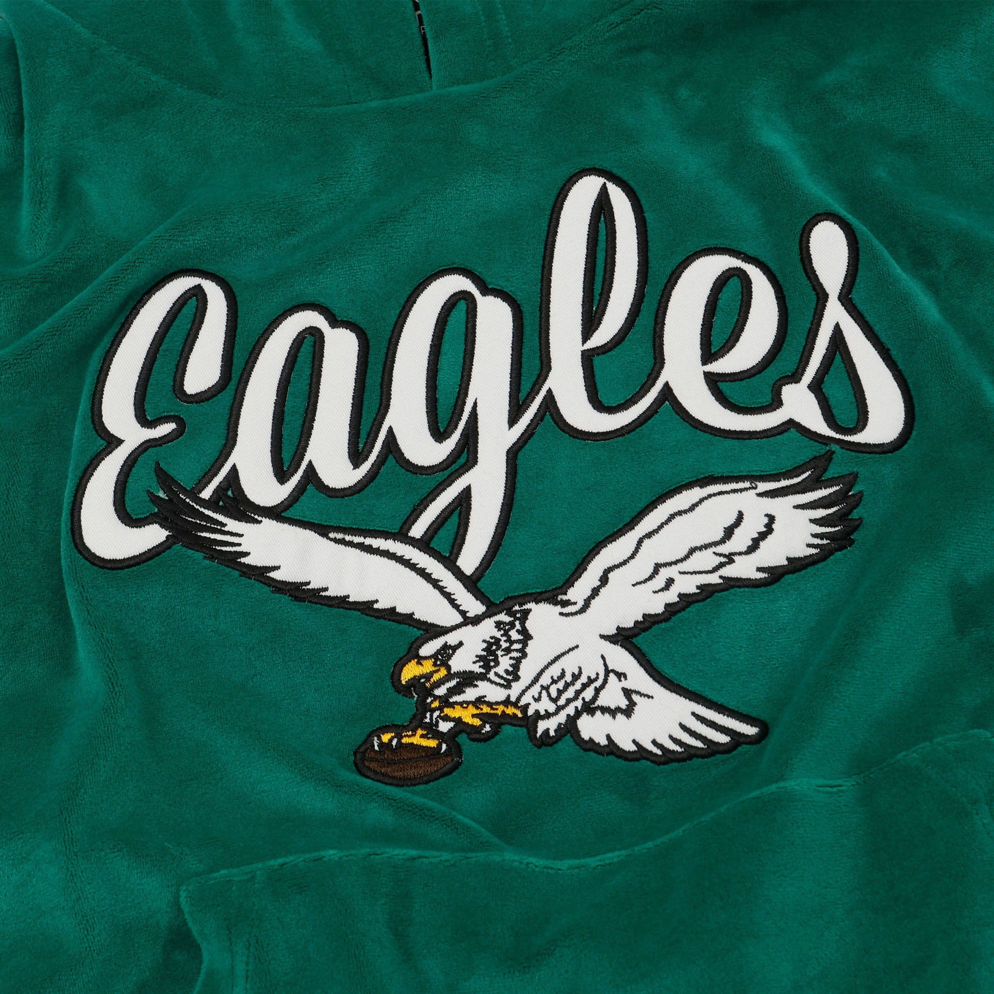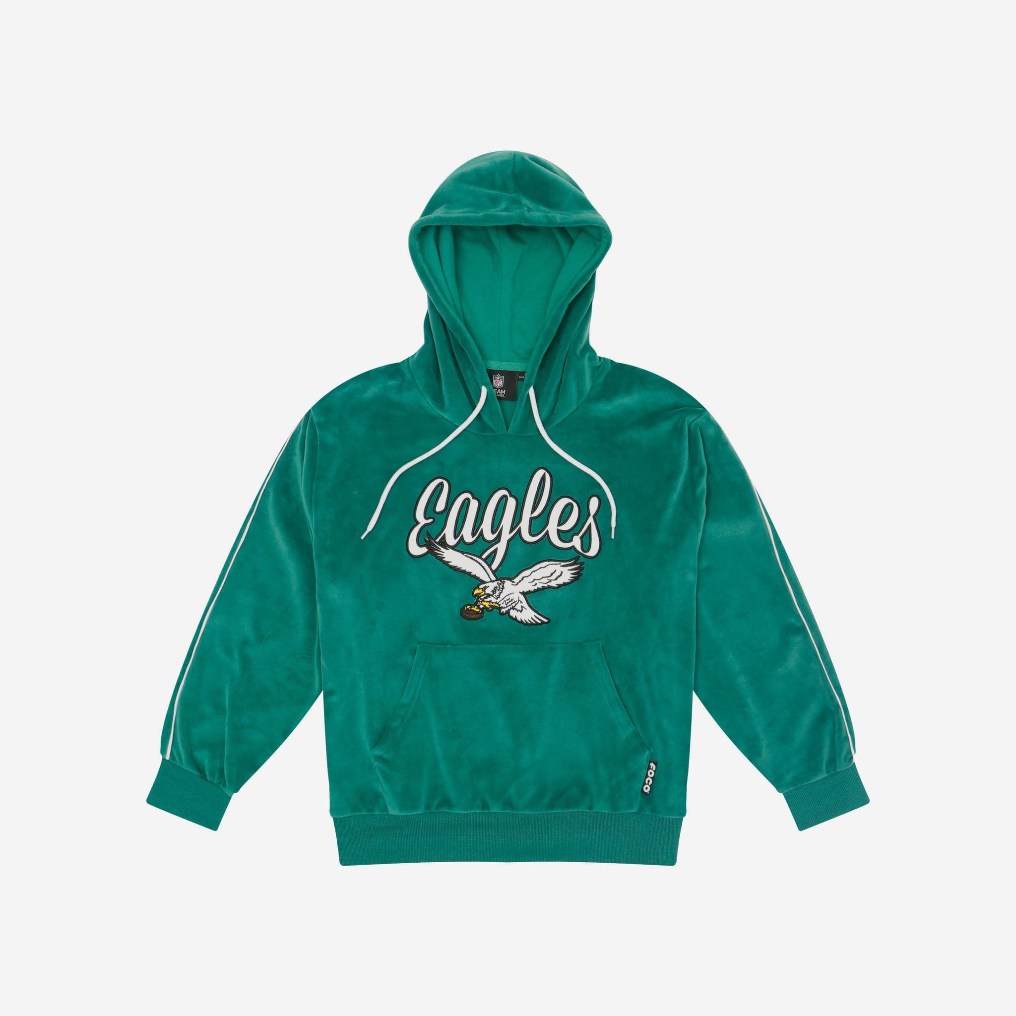 Soft. Warm. And yours to add to your gameday fit. The Philadelphia Eagles Women's Kelly Green Retro Velour Hooded Sweatshirt is just what you need to stay comfortable no matter what gameday brings.