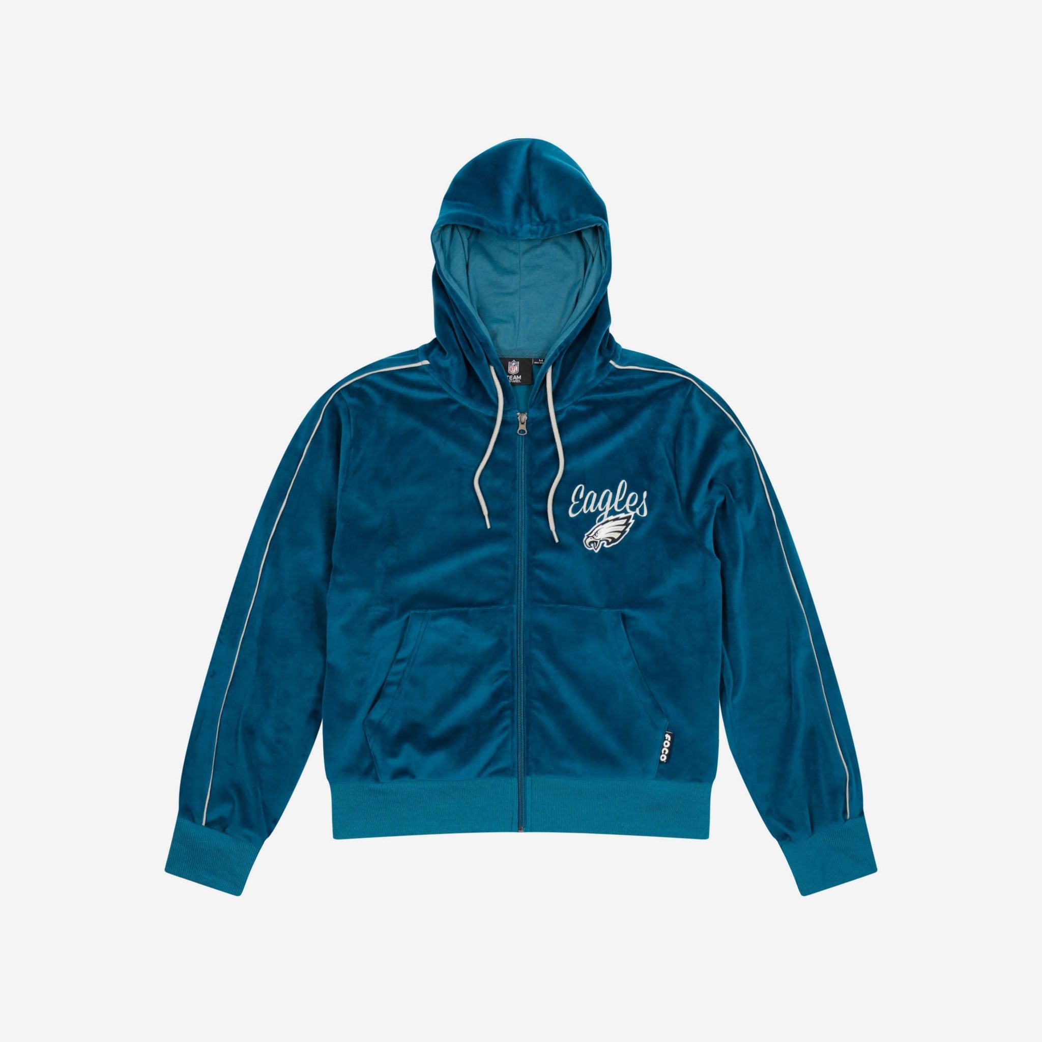 Zip up and bring fandom and fashion together in perfect harmony. This Philadelphia Eagles Women's Velour Zip Up Top is about to be your new favorite fashion teammate.