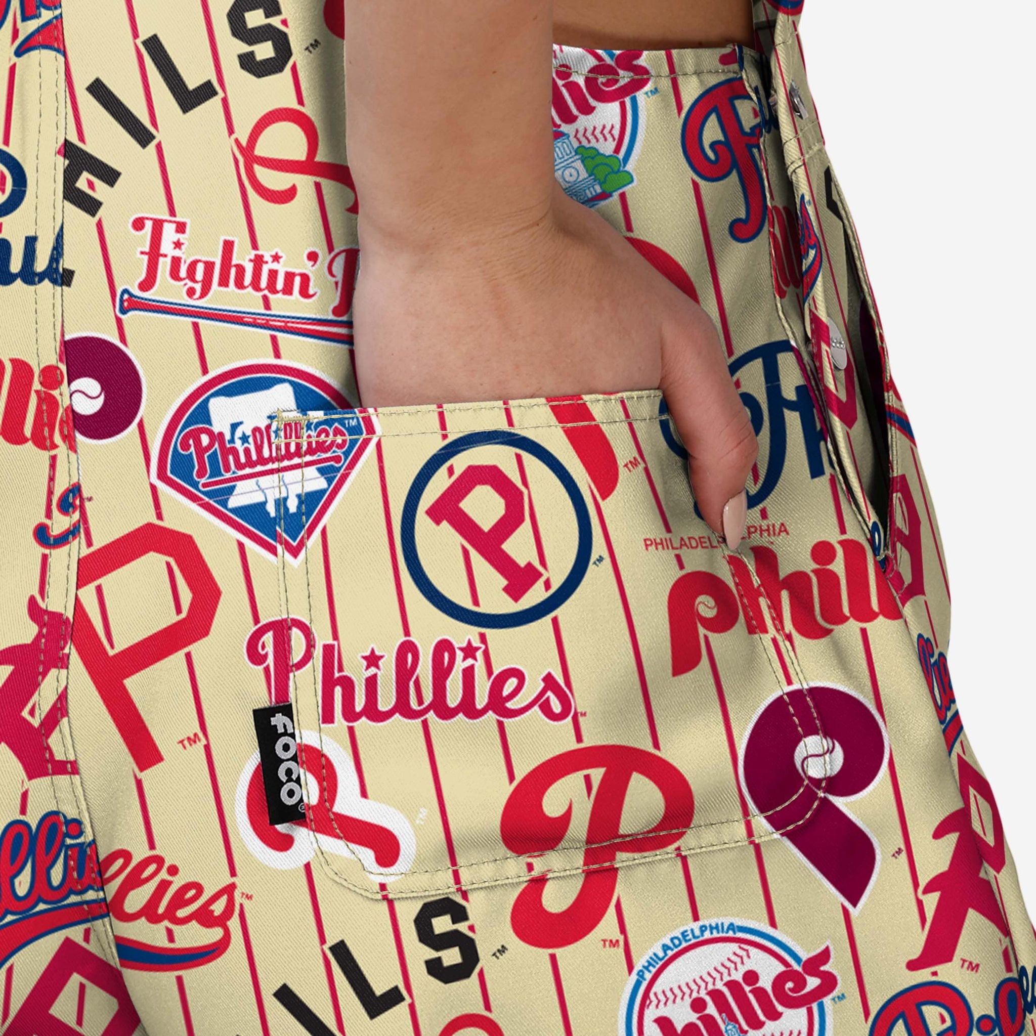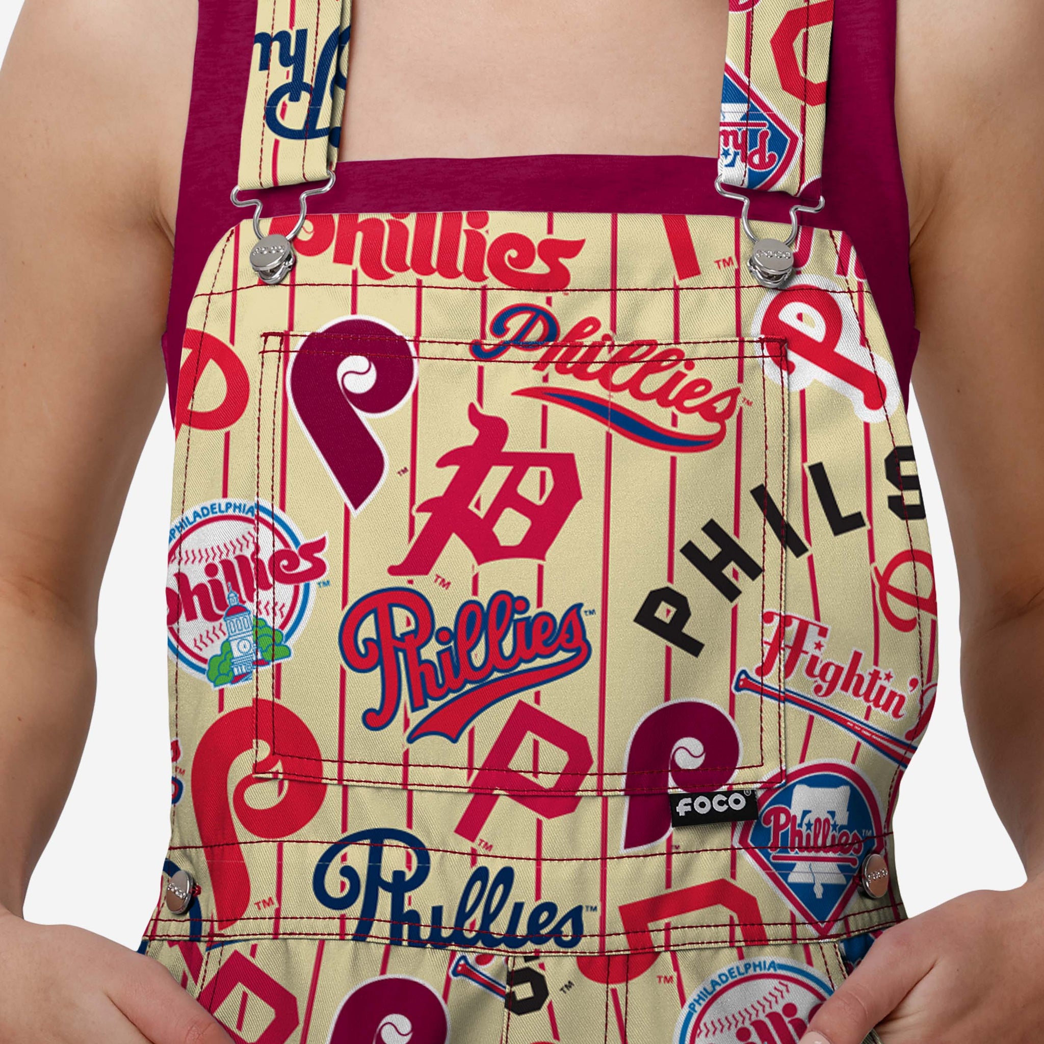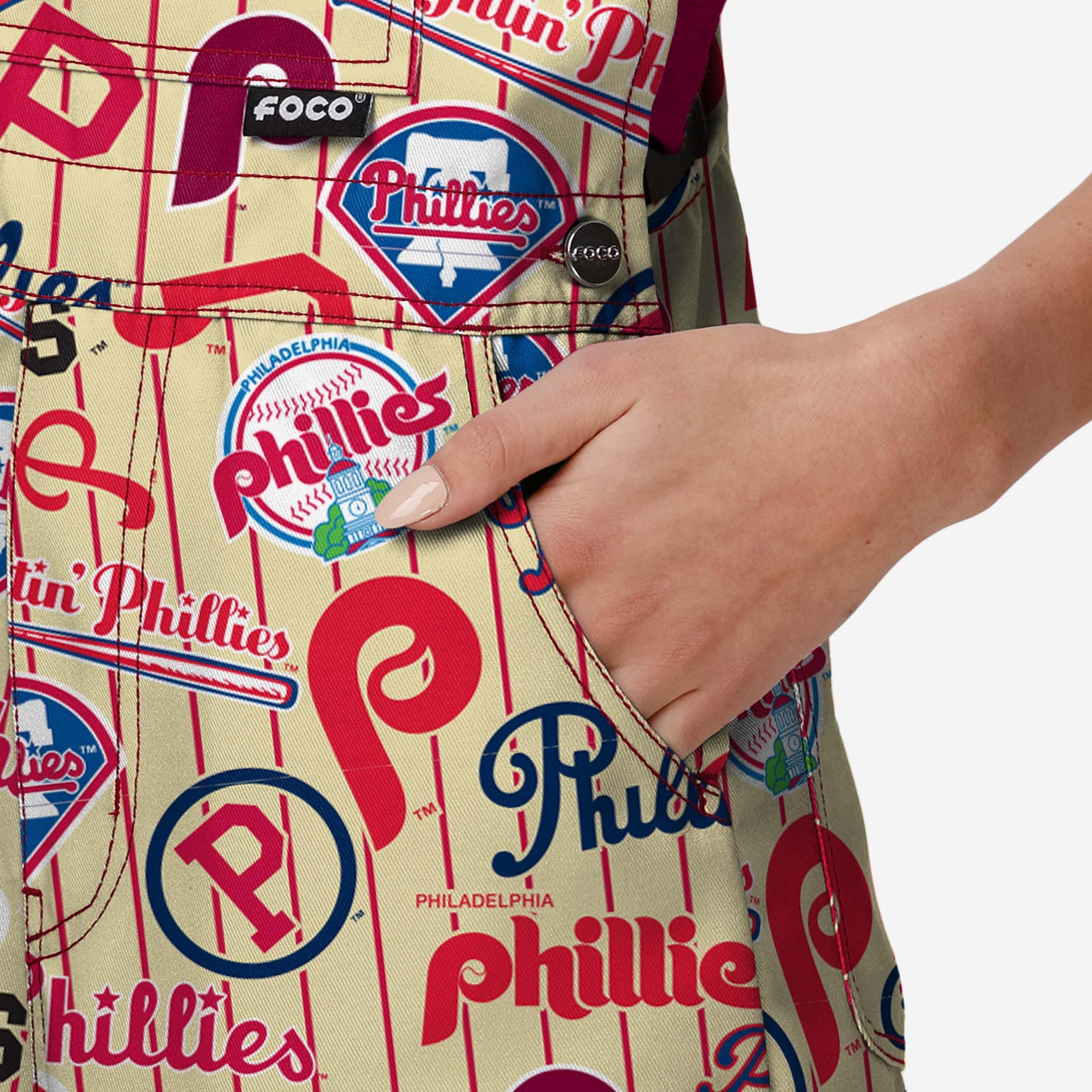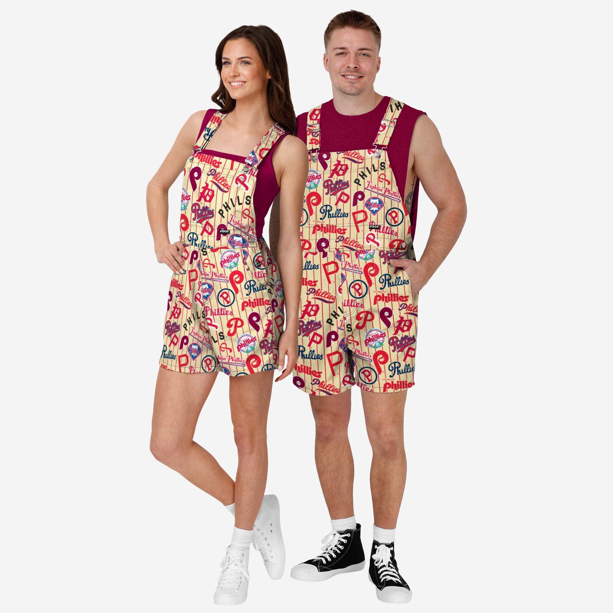• All-over team-colored design: These shortalls are covered in the official Philadelphia Phillies colors, so you can show your team spirit with pride.