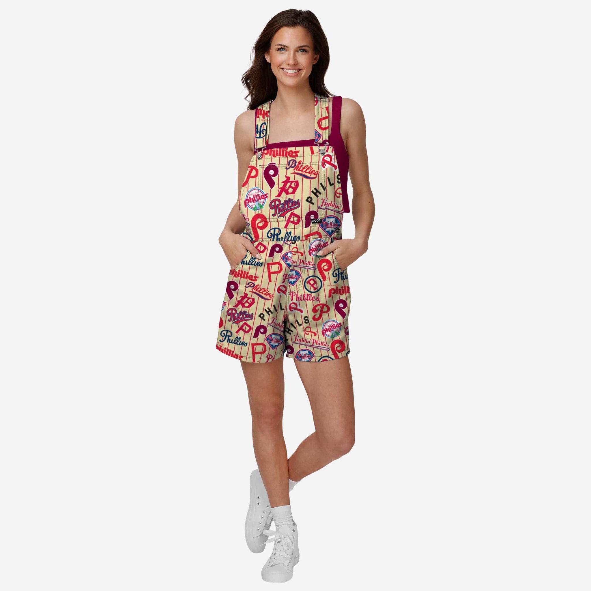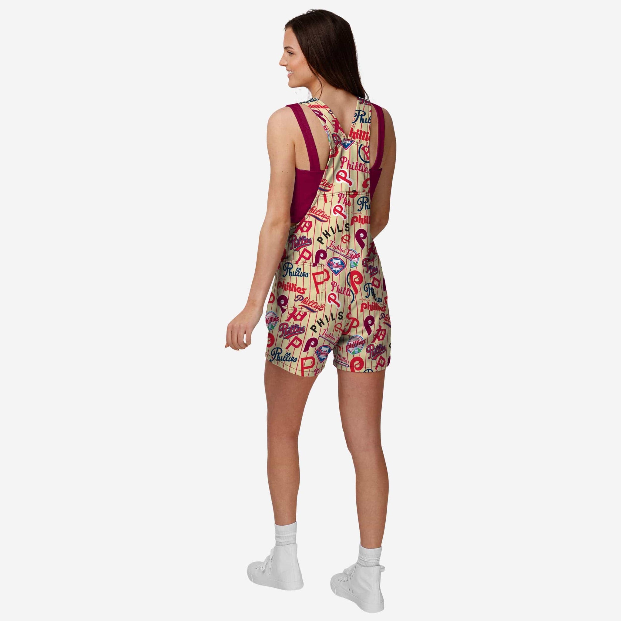 Philadelphia Phillies Womens Historic Print Bib Shortalls FOCO XS - FOCO.com