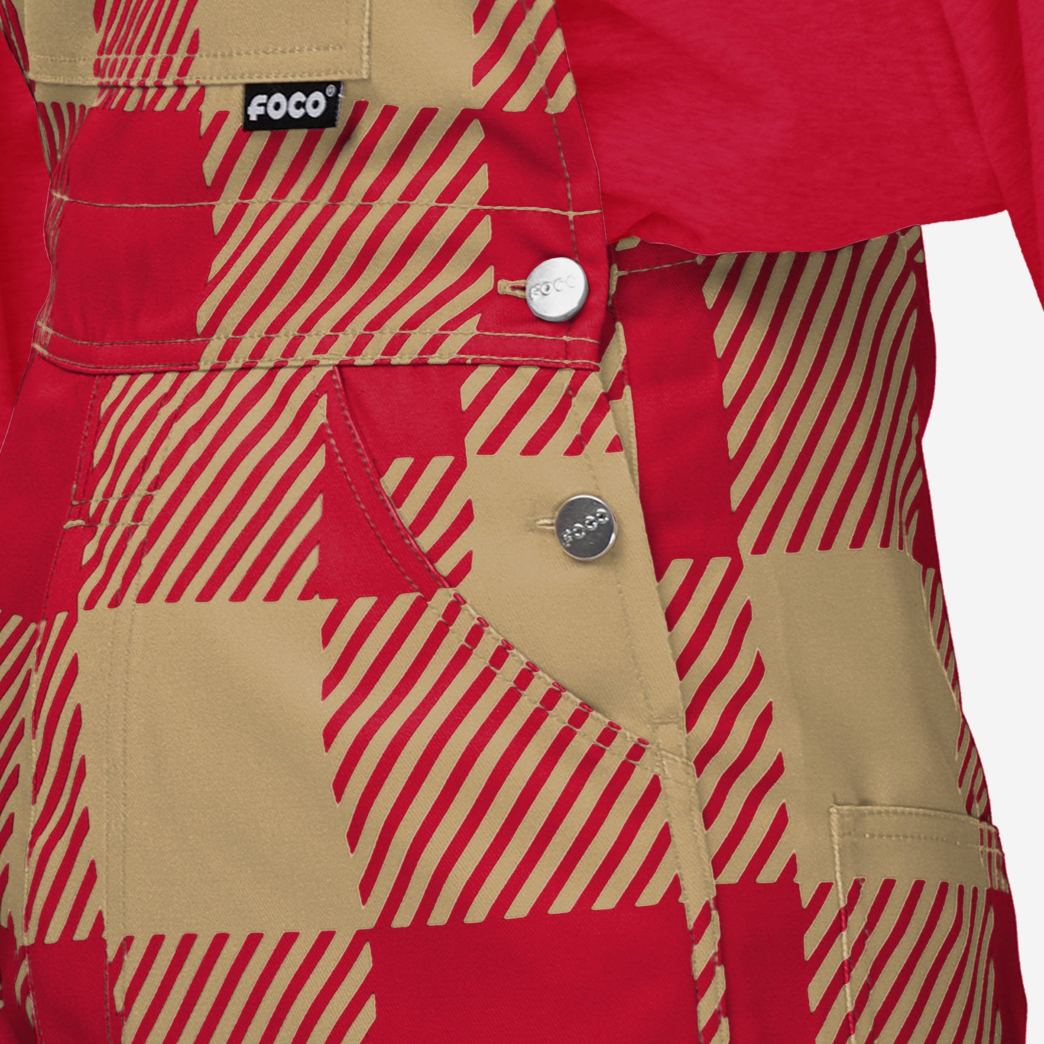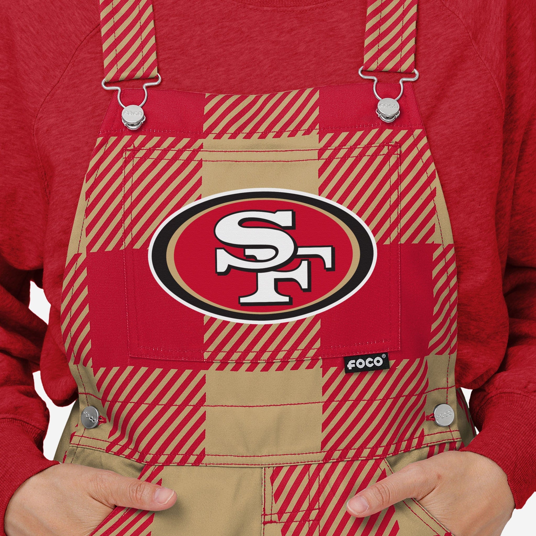 San Francisco 49ers Womens Plaid Bib Overalls FOCO - FOCO.com