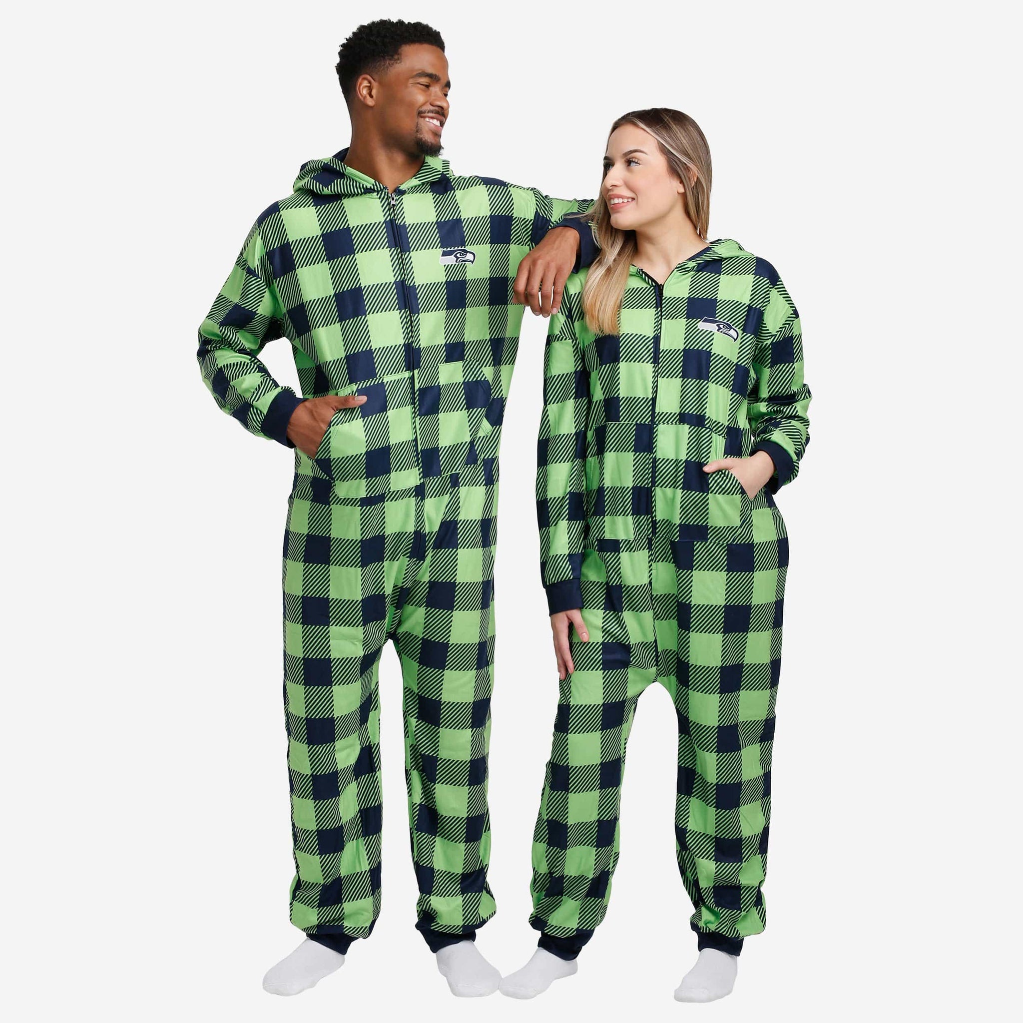 Get some matching family pajamas and dress to impress this holiday season! You won't want to miss these onesie team pajamas! These men's and women's PJ's are comfortable and show off your team spirit in the form of some sweet one piece jammies. Introducing the Seattle Seahawks Plaid One Piece Pajamas! Don't forget to take your holiday photo with the whole family wearing matching Christmas pajamas!