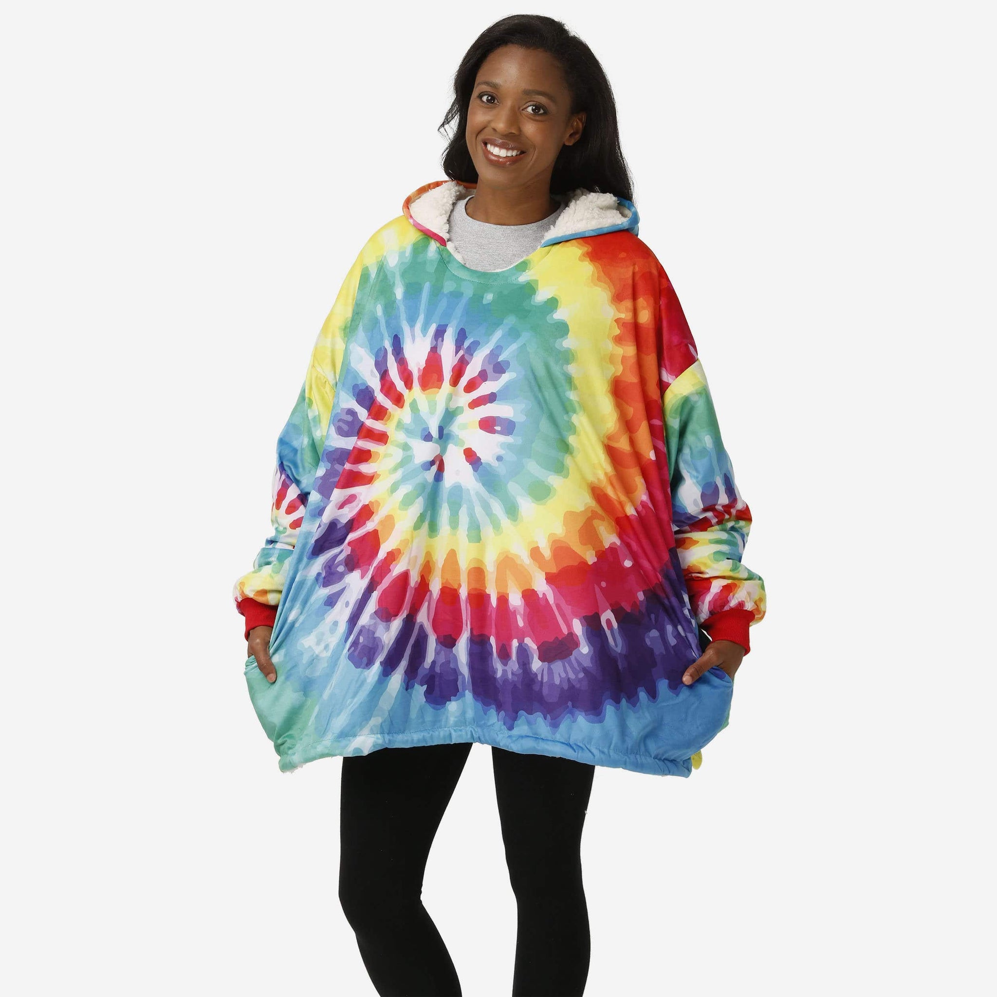 Every lazy Sunday is about to get even more perfect thanks to this Tie-Dye Sherpa Reversible Hoodeez! The relaxation game has been changed!