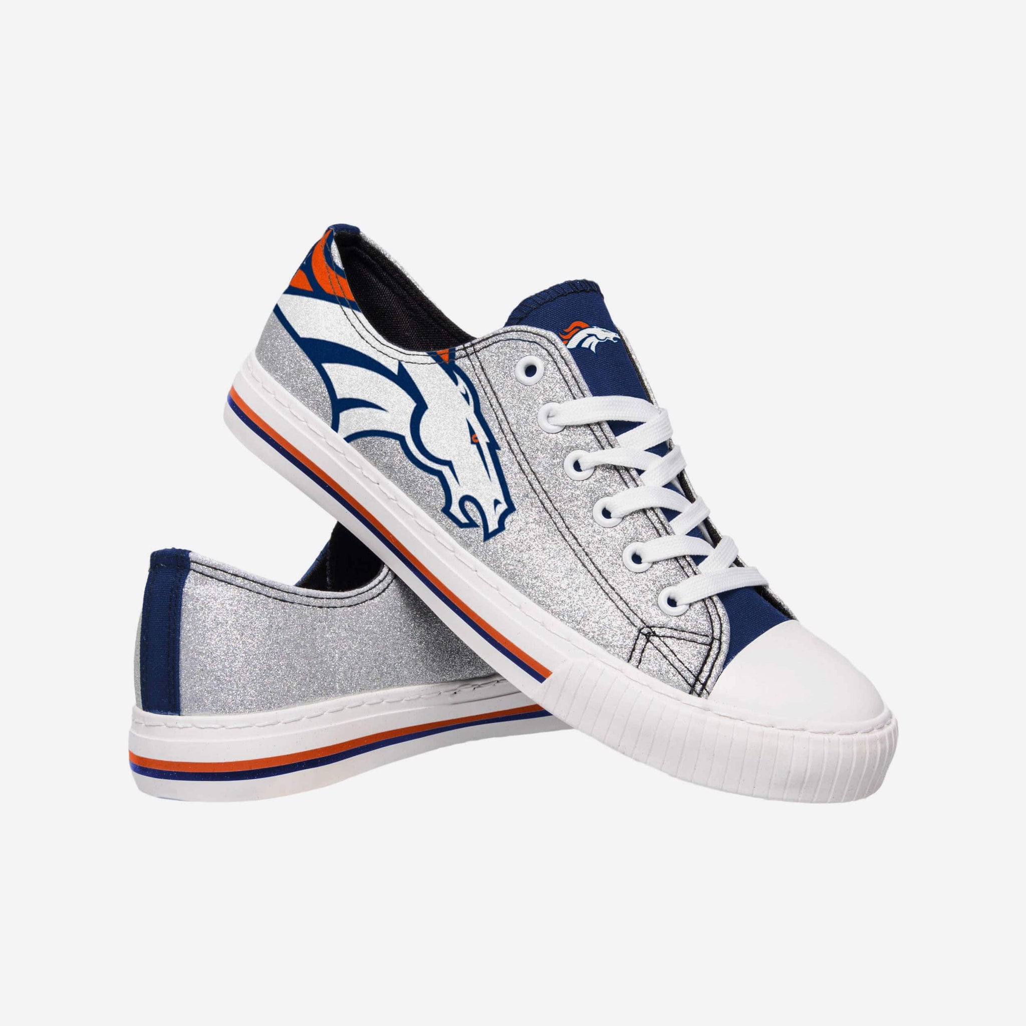 Shouldn't your shoes shine as bright as your fandom? That was a rhetorical question. Of course they should. Lace up these Denver Broncos Glitter Low Top Canvas Shoes and brighten up your sense of fan fashion.