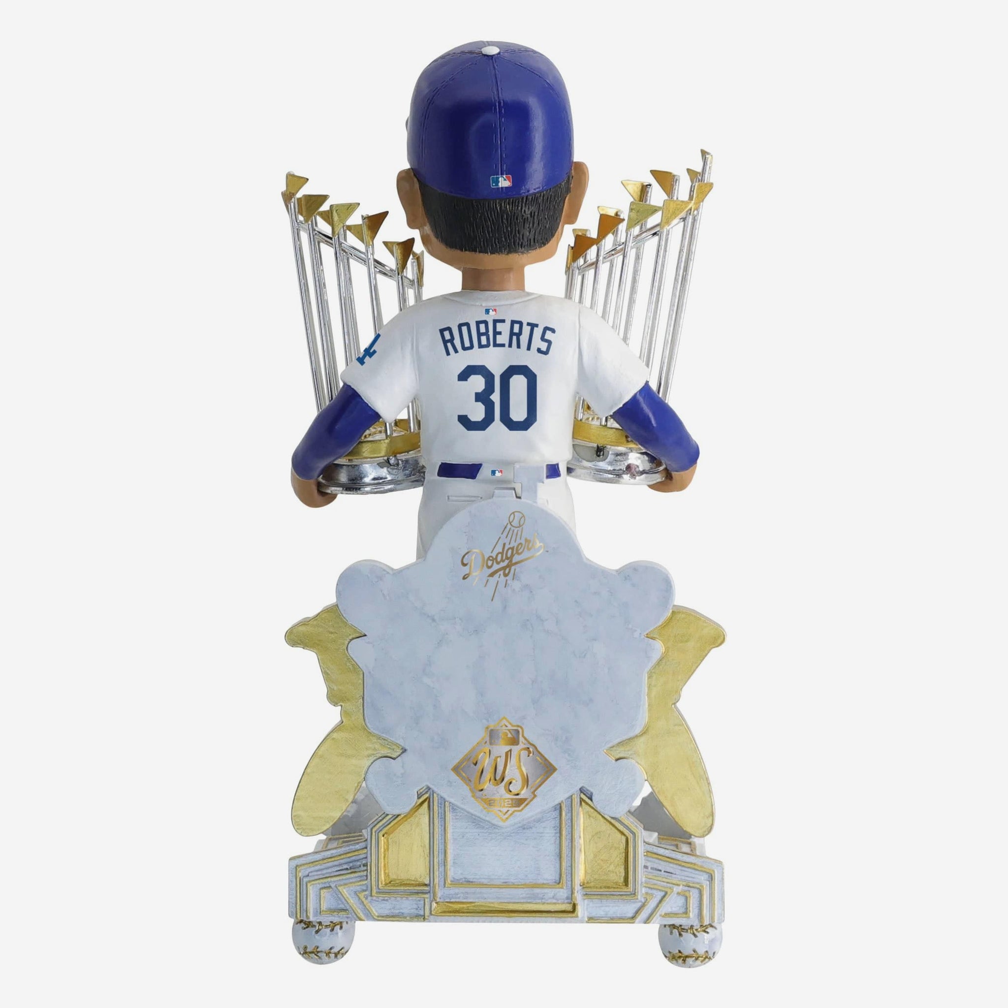 • Portrays Dave Roberts wearing his gameday uniform in a celebratory pose, hoisting two championship trophies
