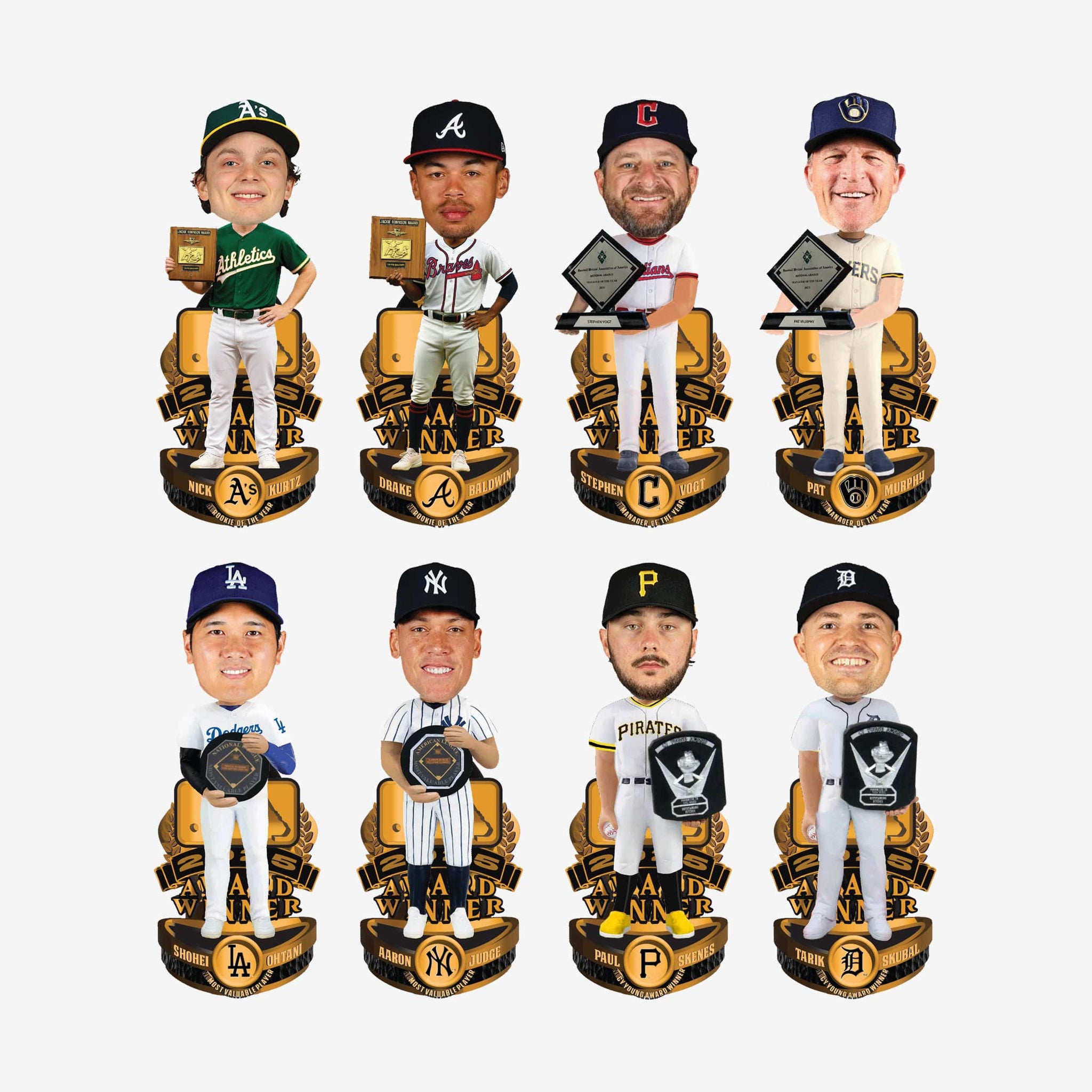 - Set includes Nick Kurtz, Drake Baldwin, Pat Murphy, Stephen Vogt, Tarik Skubal, Paul Skenes, Aaron Judge, and Shohei Ohtani posing in their gameday uniforms to honor their standout 2025 season achievements