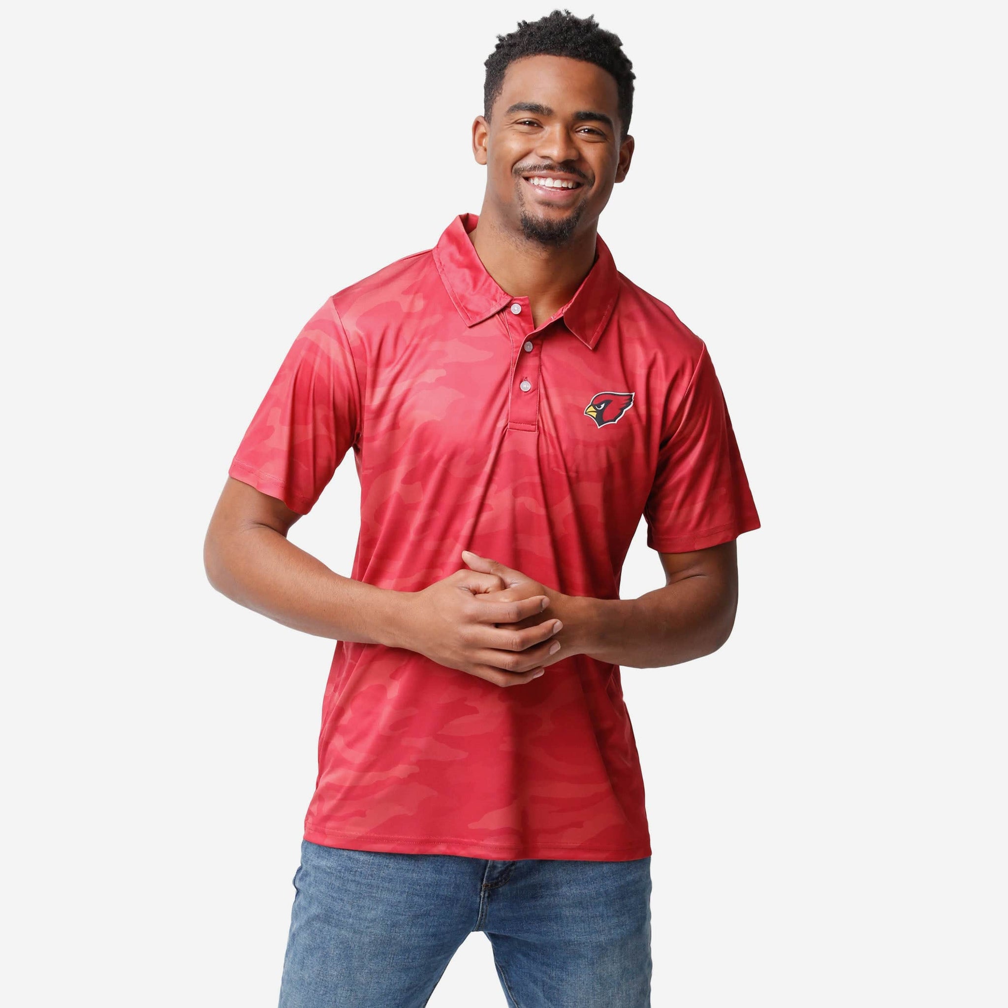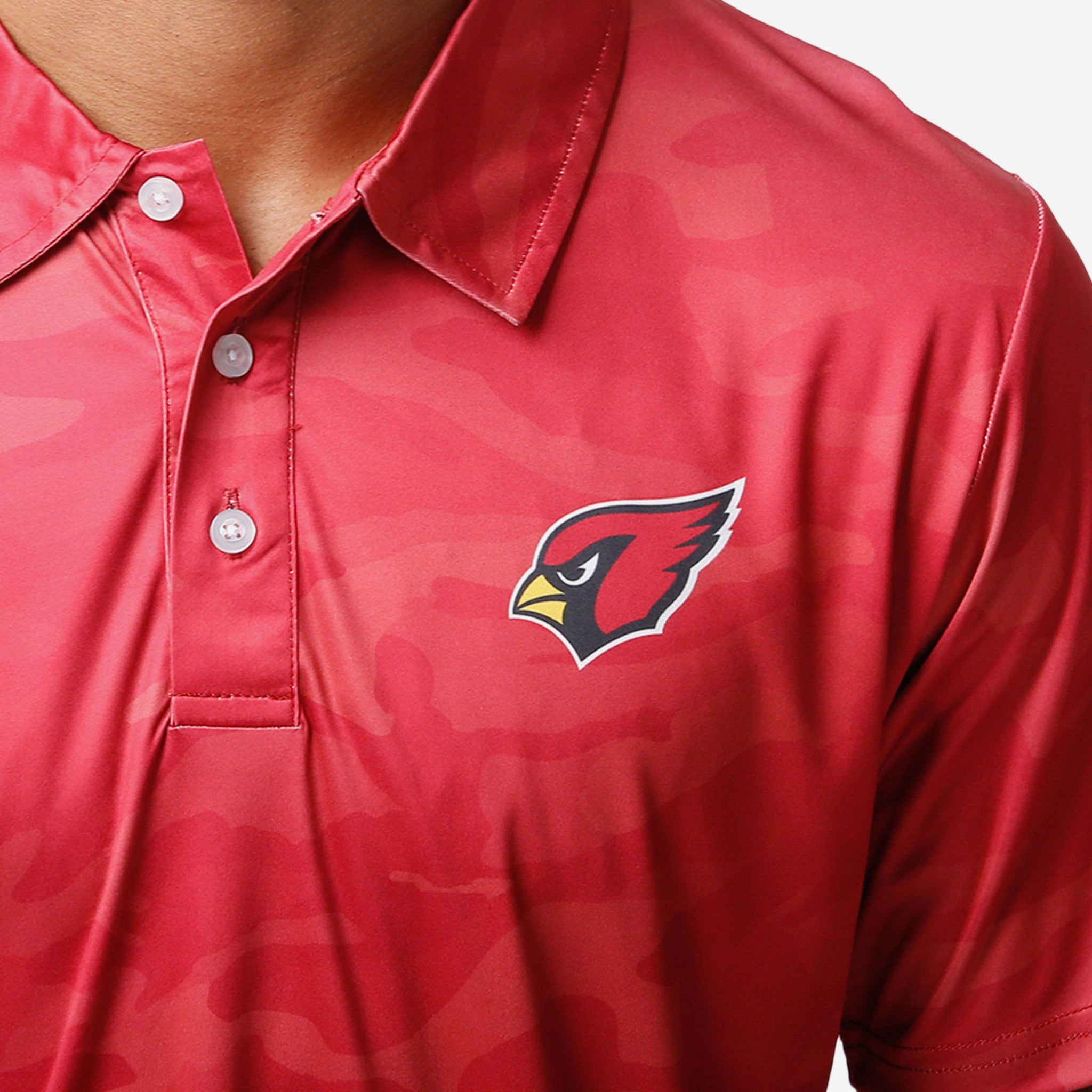 We're not talking about those phony baloney fake fans that still call it "sportsball." True fans like you simply can't hide your team pride. Not even with some camouflage. When you rock this Arizona Cardinals Color Camo Polyester Polo, you'll see what we mean.