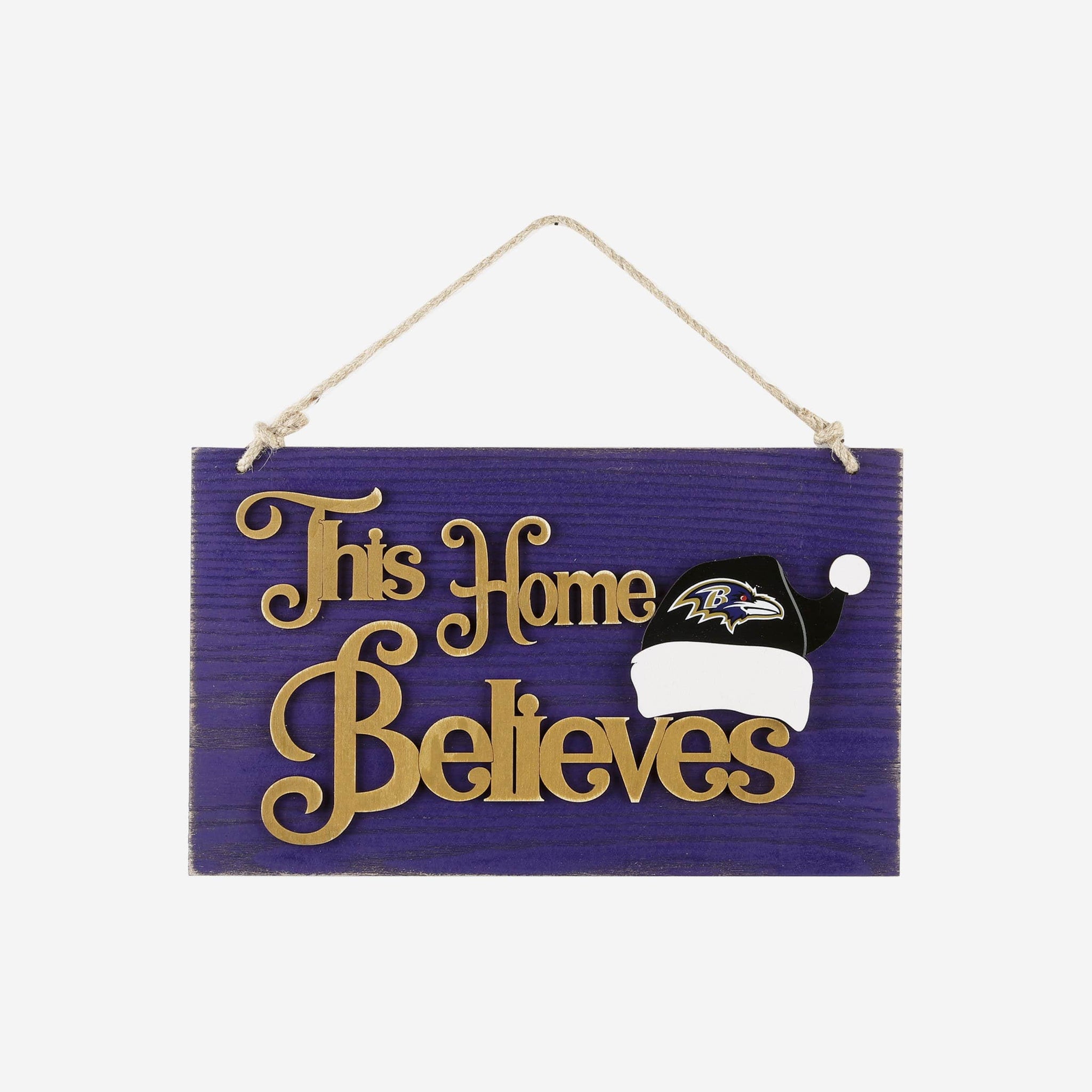 Your fancave is going to feel more like The North Pole with this Baltimore Ravens This Home Believes Wall Sign on display! Proudly show it off so Fan-ta Claus brings you something nice this year!