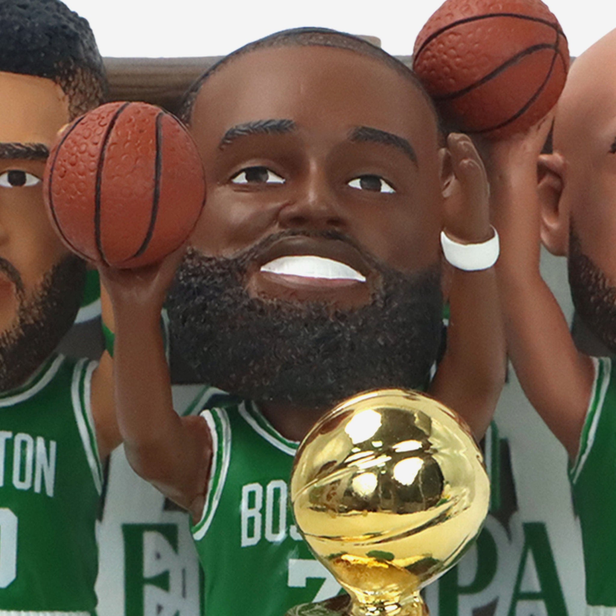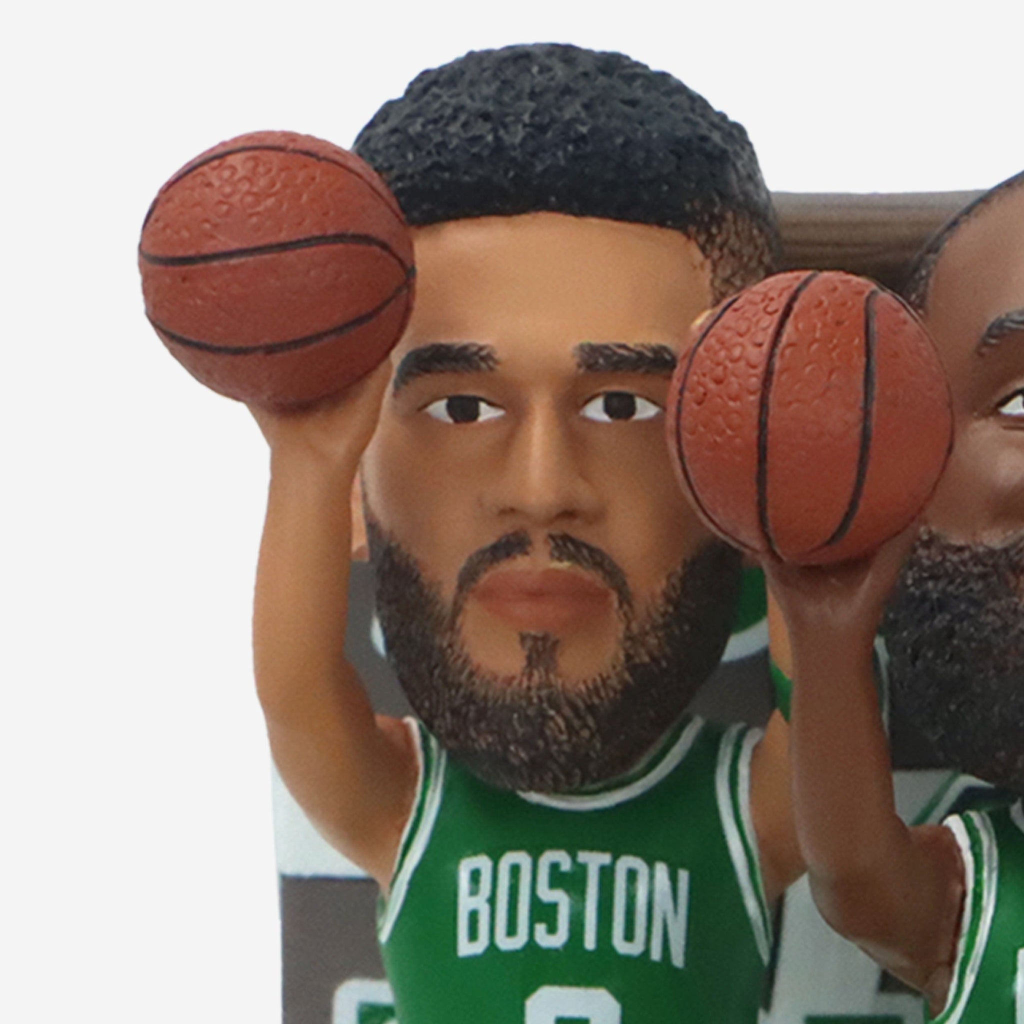 • Portrays Jayson Tatum, Jaylen Brown, and Derrick White wearing their green gameday uniforms in action poses, ready to hit from three