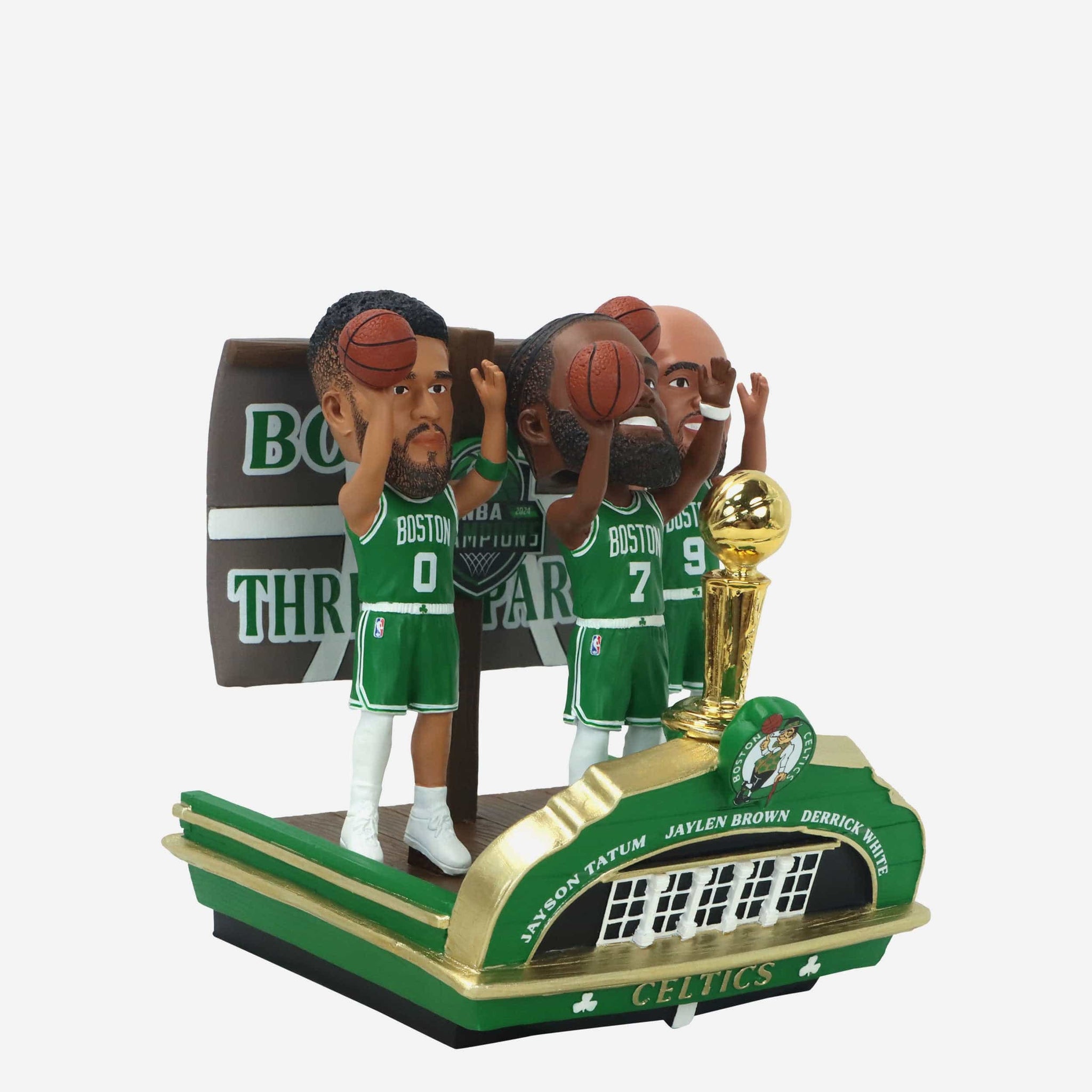 It’s a Boston Three Party! From way downtown into your collection, this Boston Celtics 2024 NBA Champions Mini Bobblehead Scene is a must-have!