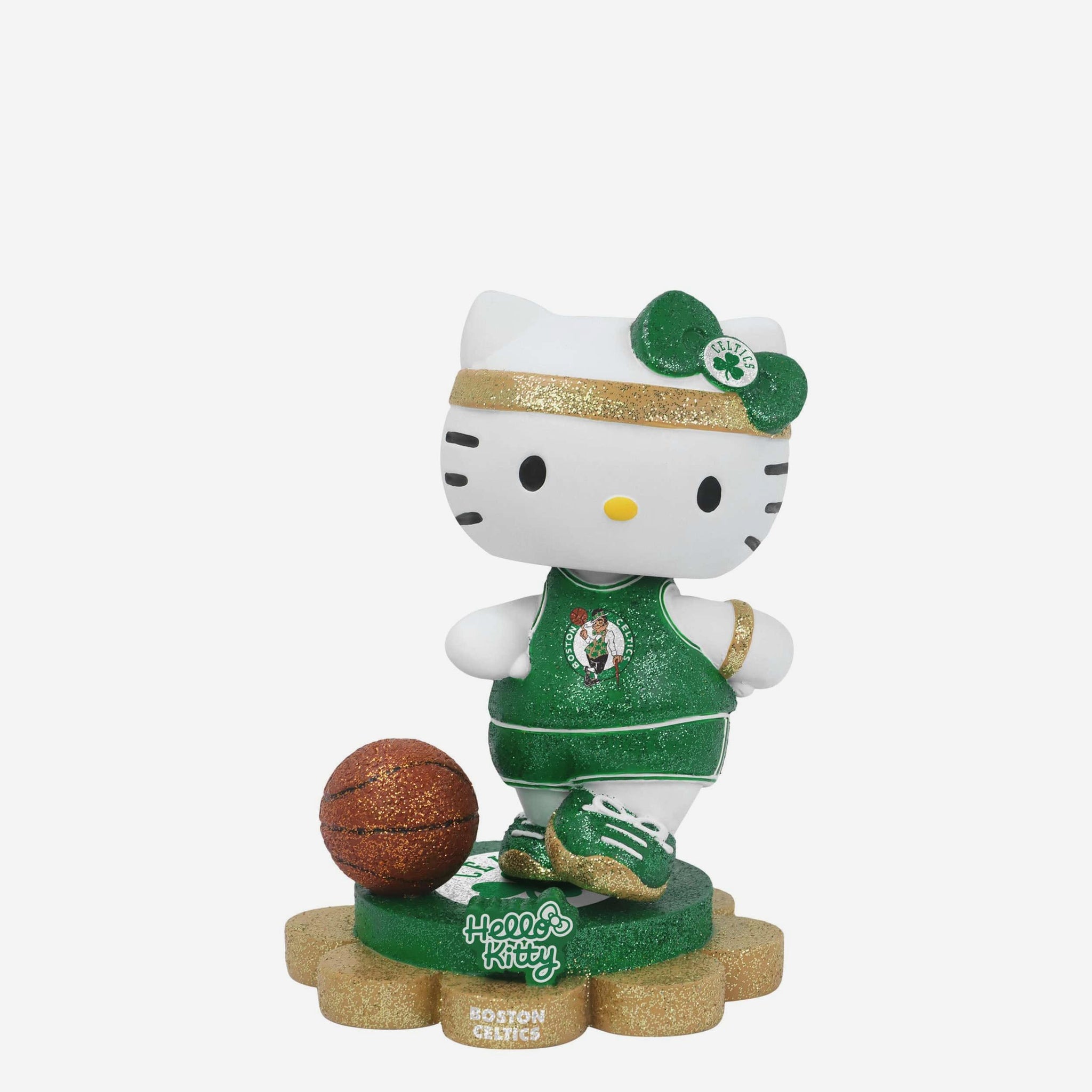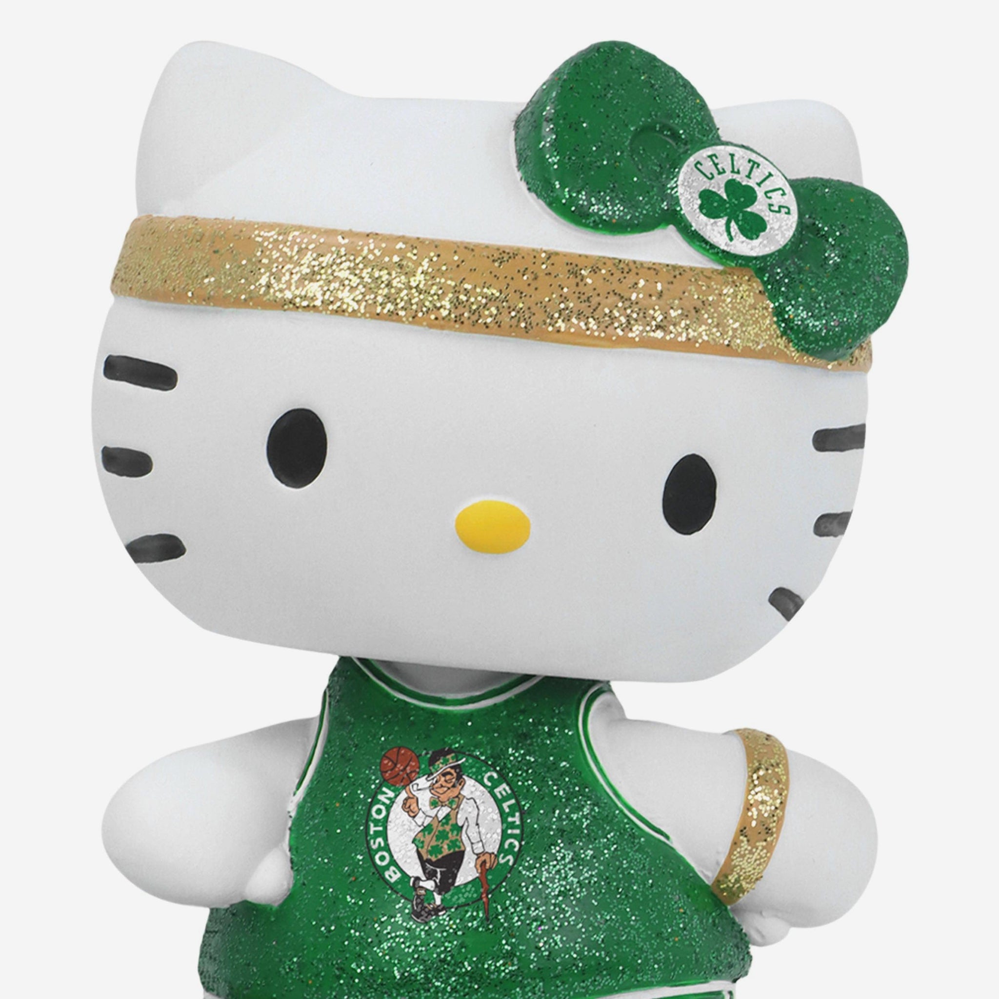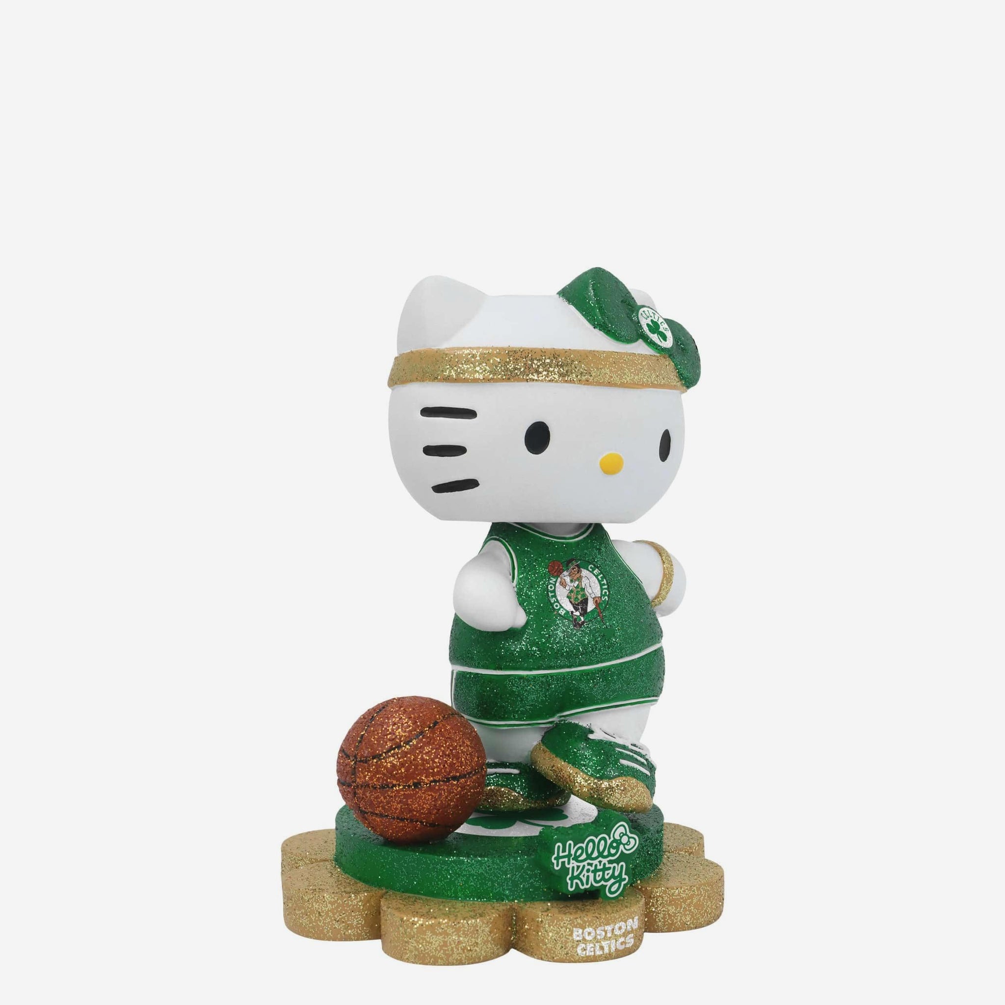 Cute, collectible, and courtside-ready! Hello Kitty® is officially hitting the hardwood and your collection in sparkle style with the Boston Celtics Hello Kitty® Glitter Mini Bobblehead.