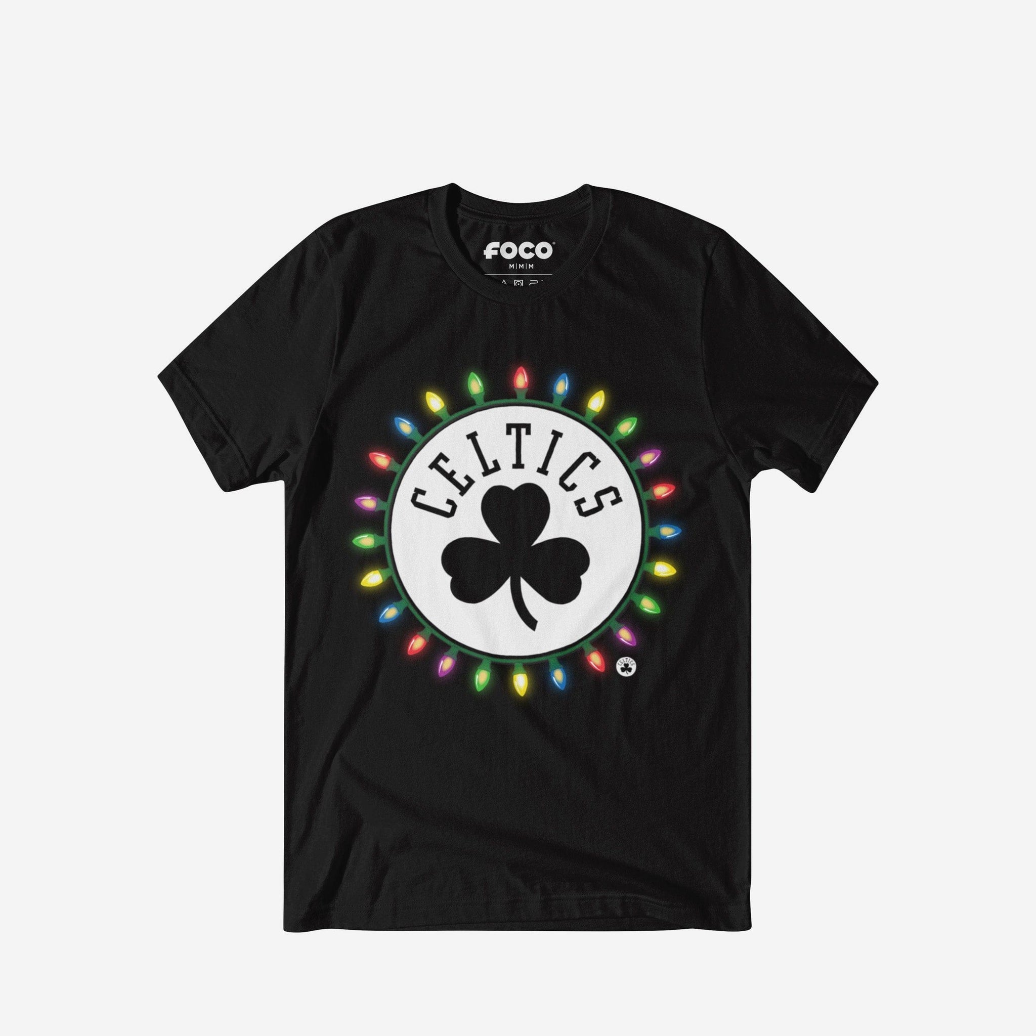 Boston Celtics Primary Logo Holiday Lights T-Shirt FOCO S - FOCO.com