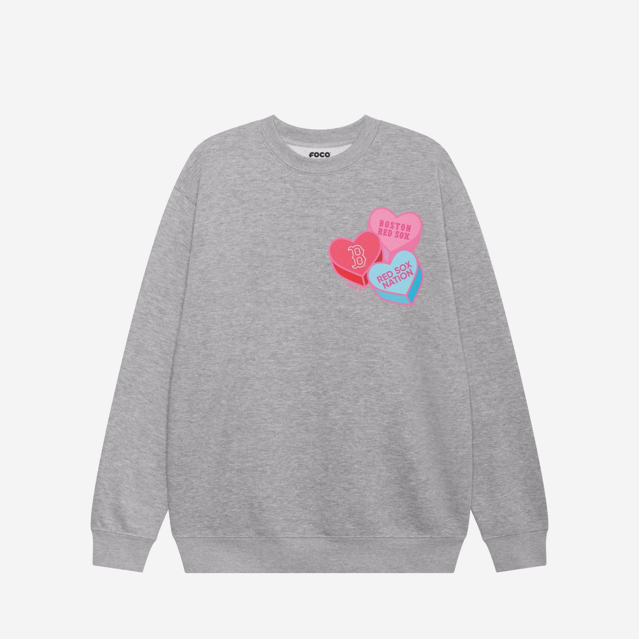 Boston Red Sox Candy Heart Crew Neck Sweatshirt FOCO Athletic Heather S - FOCO.com