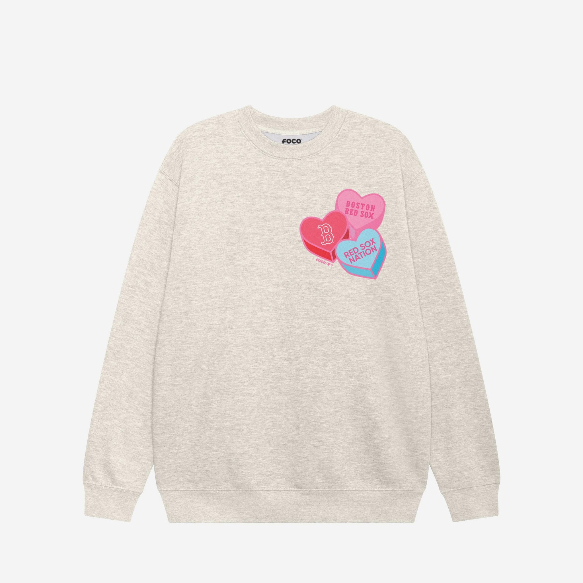 Boston Red Sox Candy Heart Crew Neck Sweatshirt FOCO Oatmeal Heather S - FOCO.com