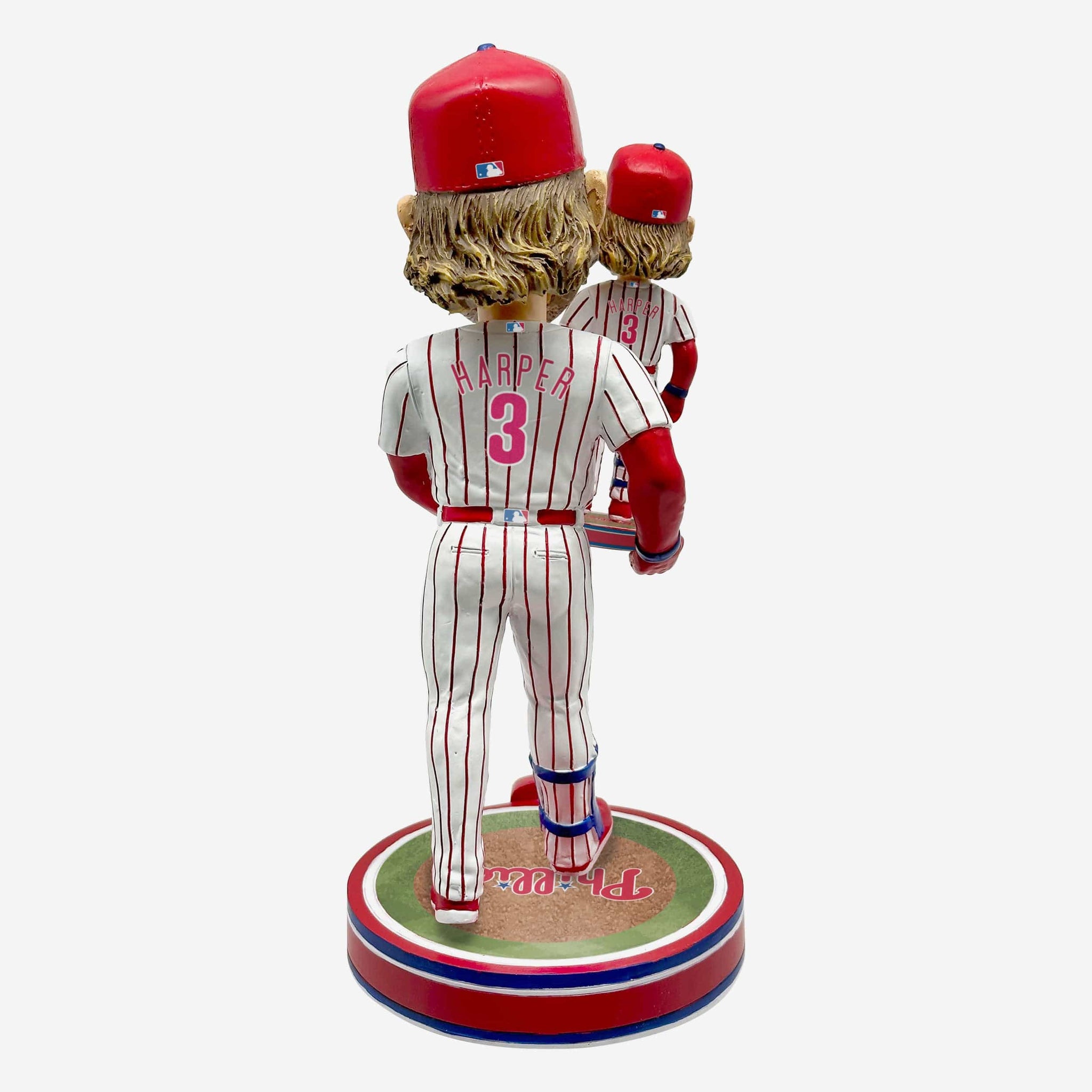 Your favorite star is in good hands - their own! Get ready to double down in your collection with this Bryce Harper Philadelphia Phillies Bobble Dubblz Bobblehead.