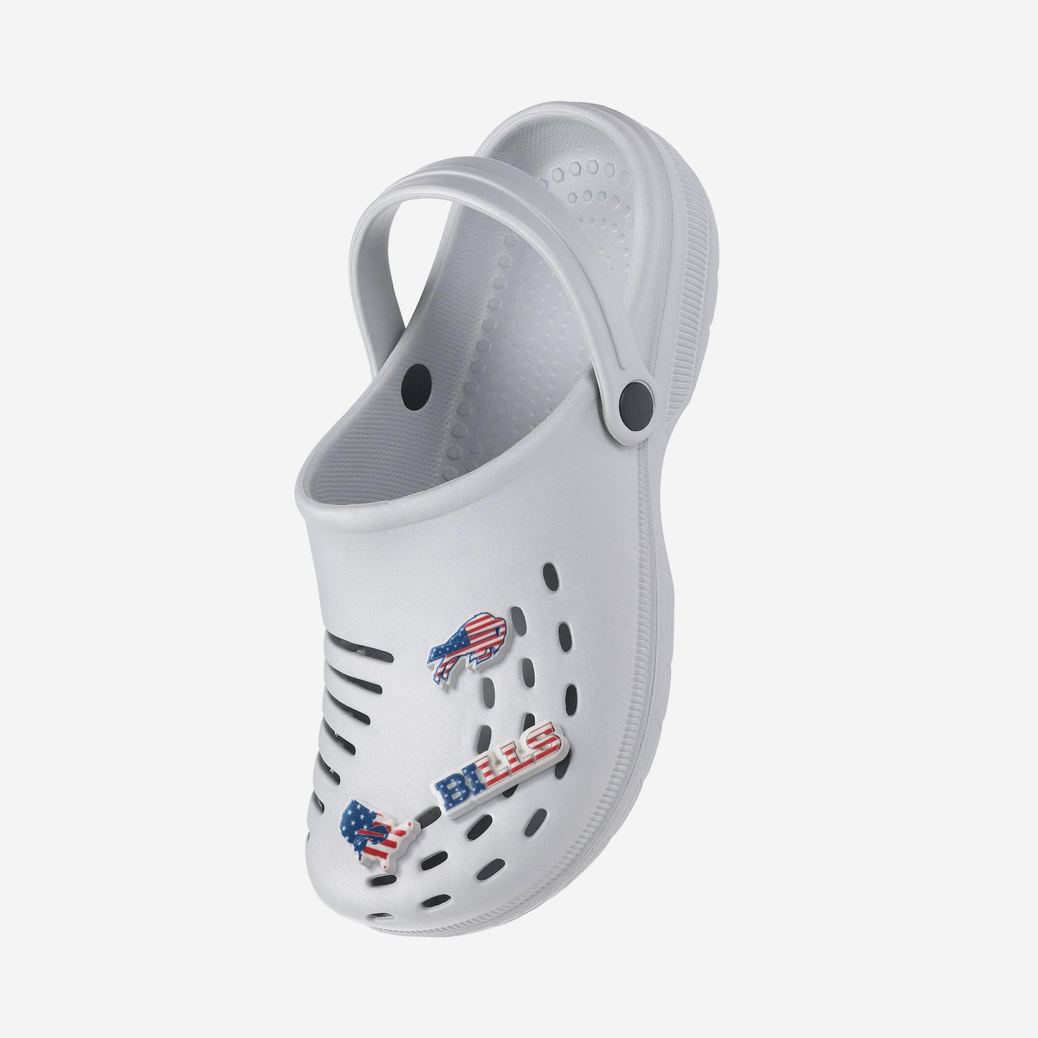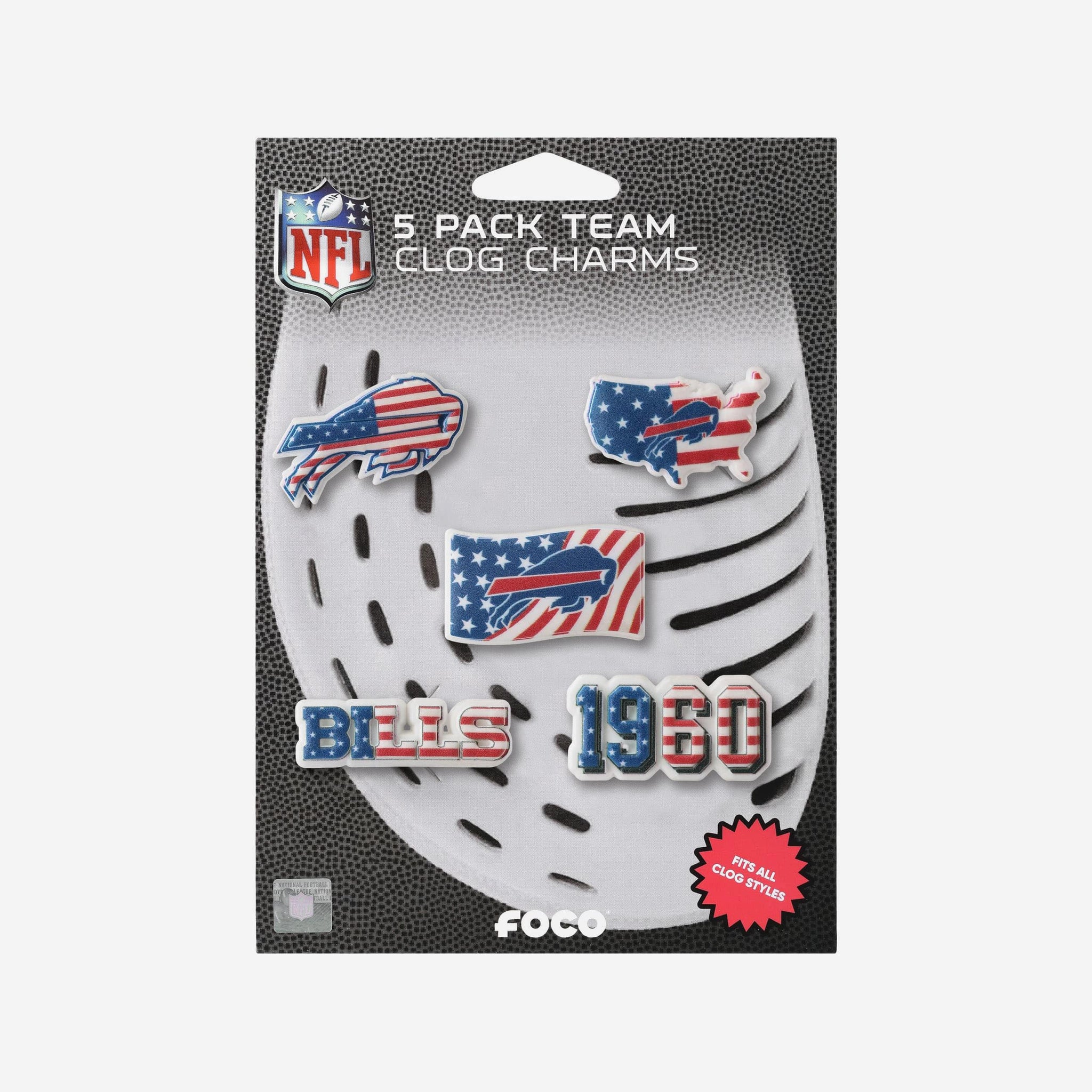 Add some star-spangled style to your footwear with these Buffalo Bills Americana 5 Pack Team Clog Charms. Featuring patriotic-inspired team designs, this five-piece set lets you customize your favorite clogs with bold graphics that bring together your love of country and team.