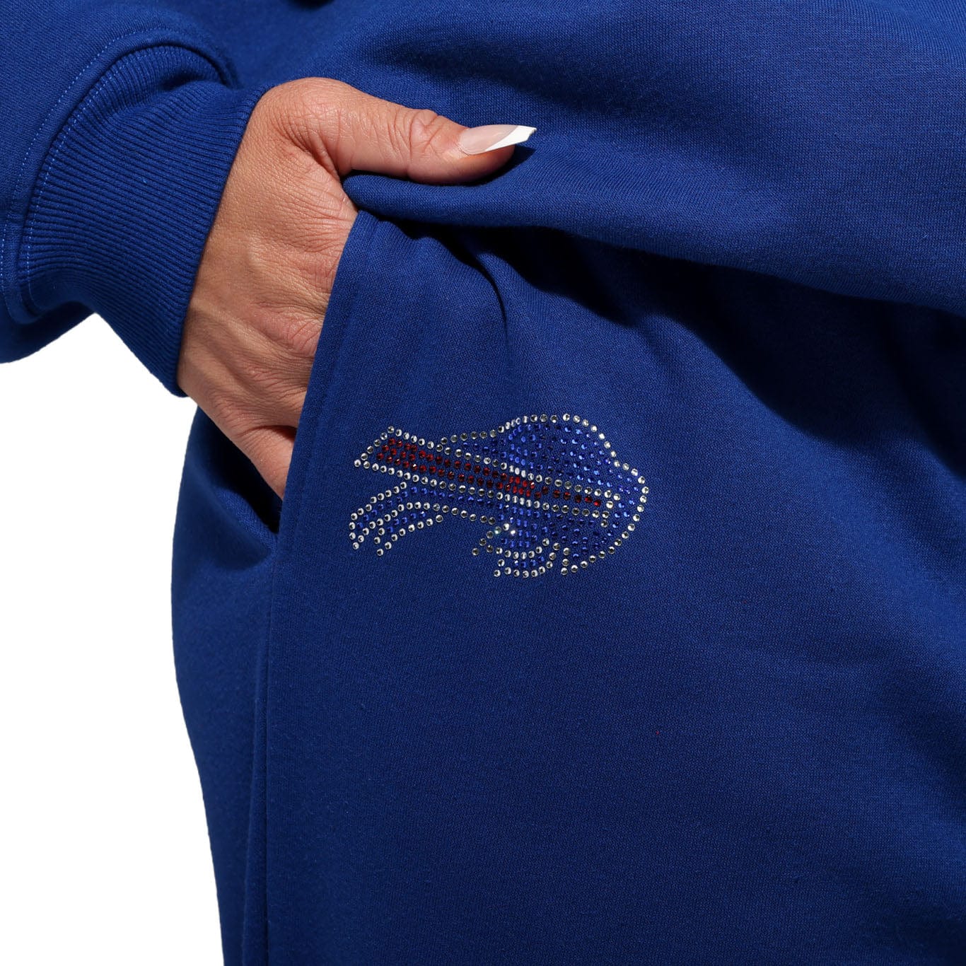 Turn your team spirit into a style statement with the Buffalo Bills Womens Wordmark Rhinestone Sweatpants. Designed for fans who love a little glam, these sweatpants feature rhinestone logo and wordmark details that shimmer with every step. Stand out. Stay cozy.